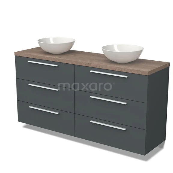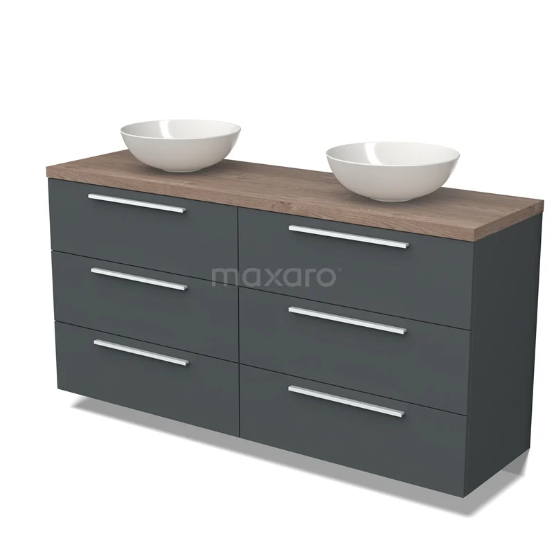 Modulo Plato Badmöbel mit Aufsatzwaschbecken | 160 cm Dunkelgrau Flach front Mittelbraune Eiche blatt 6 Schubladen