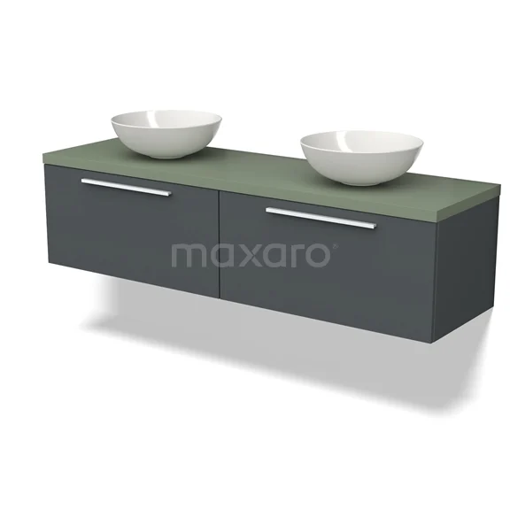 Modulo Plato Badmöbel mit Aufsatzwaschbecken | 160 cm Dunkelgrau Flach front Salbeigrün blatt 2 nebeneinanderliegende Schubladen
