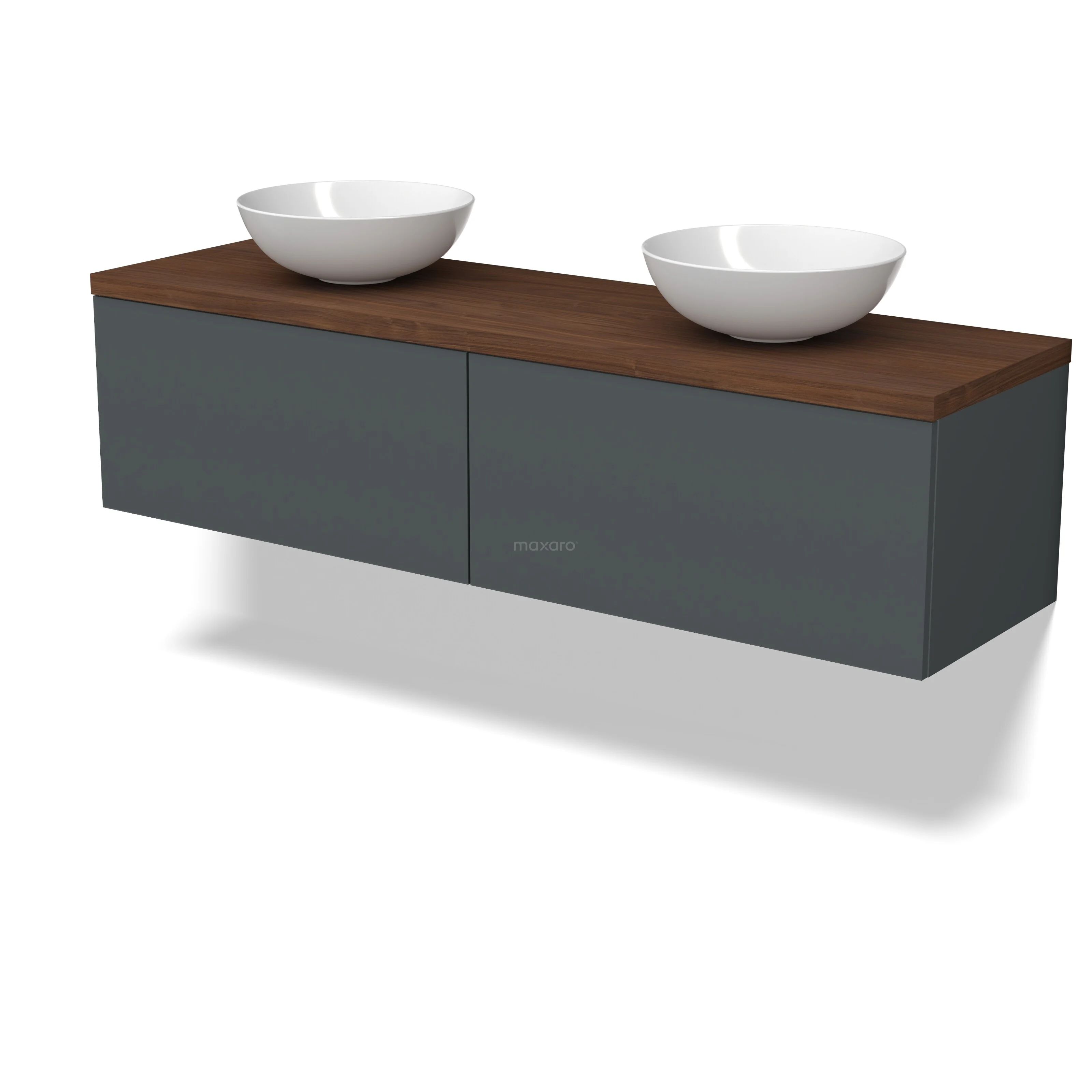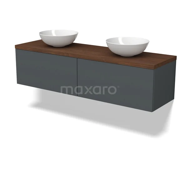 Modulo Plato Badmöbel mit Aufsatzwaschbecken | 160 cm Dunkelgrau Flach front Walnuss blatt 2 nebeneinanderliegende Schubladen