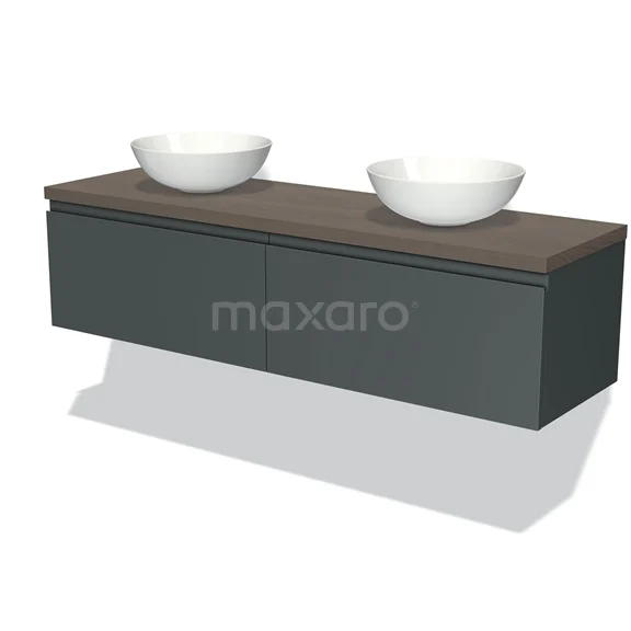 Modulo Plato Badmöbel mit Aufsatzwaschbecken | 160 cm Dunkelgrau Grifflos front Dunkelbraune Eiche blatt 2 nebeneinanderliegende Schubladen