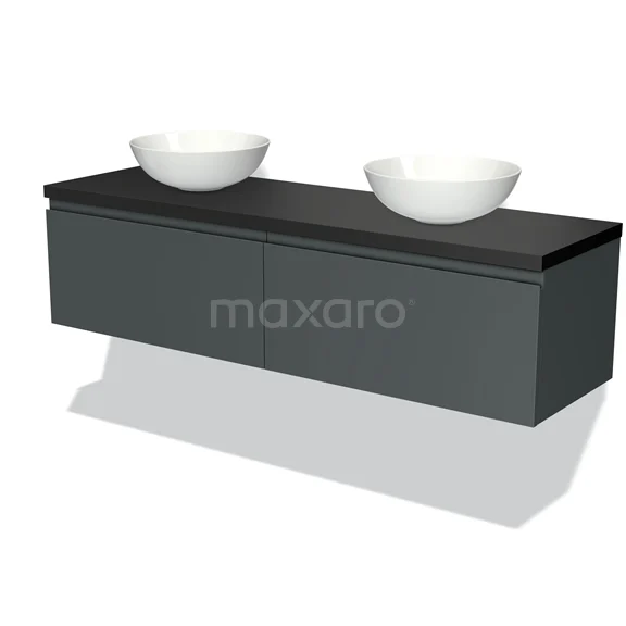 Modulo Plato Badmöbel mit Aufsatzwaschbecken | 160 cm Dunkelgrau Grifflos front Matt Schwarz blatt 2 nebeneinanderliegende Schubladen