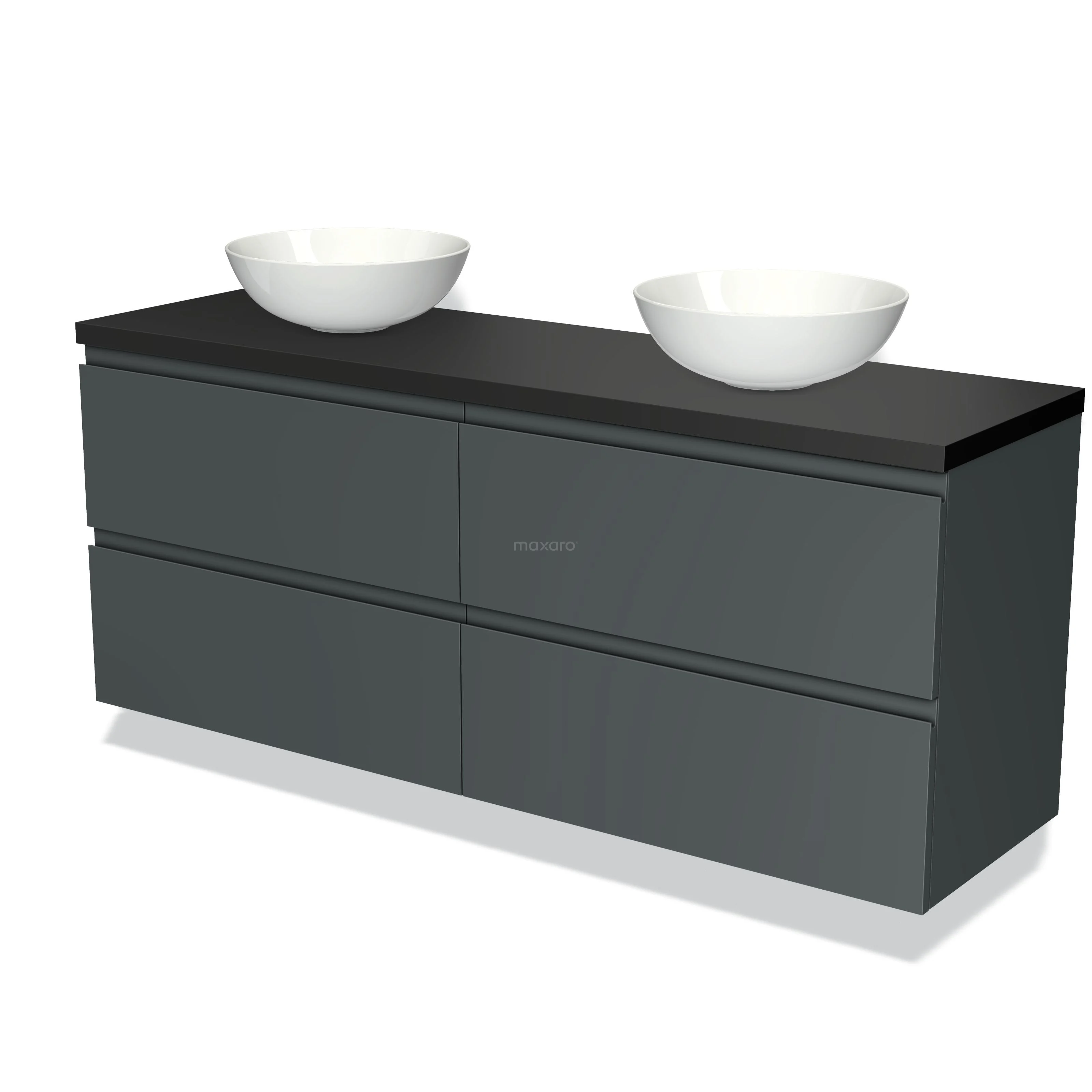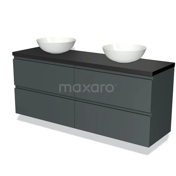 Modulo Plato Badmöbel mit Aufsatzwaschbecken | 160 cm Dunkelgrau Grifflos front Matt Schwarz blatt 4 Schubladen