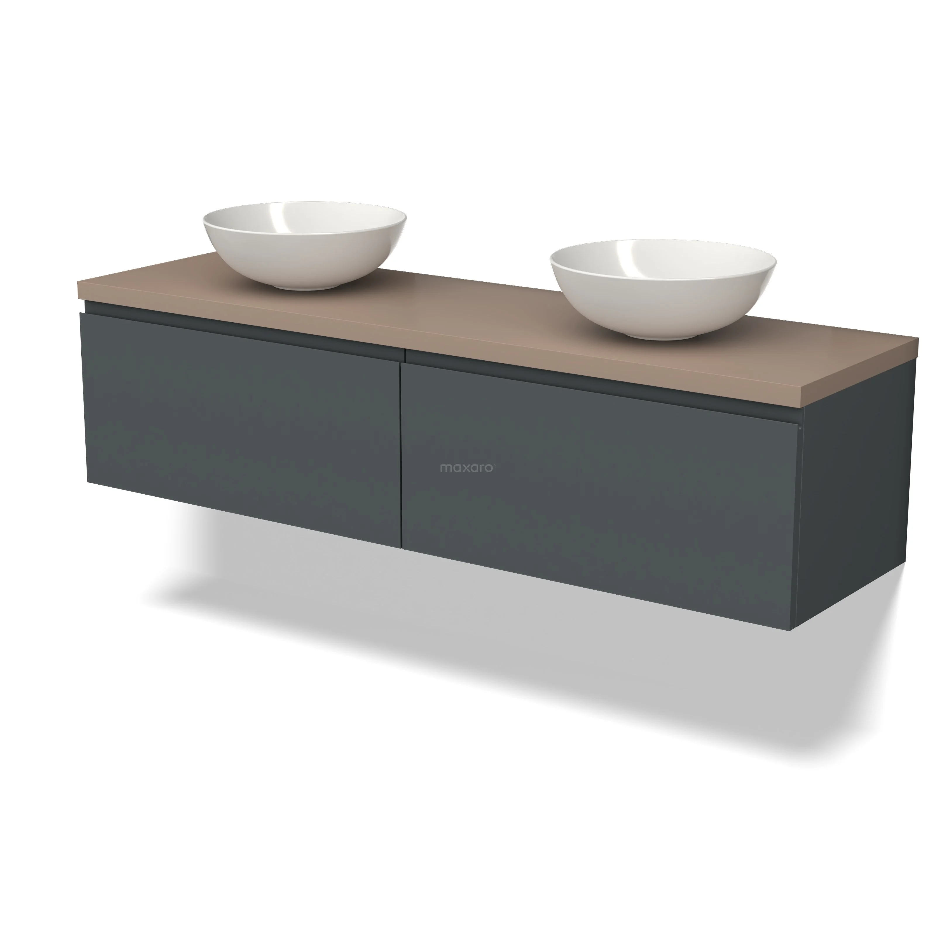 Modulo Plato Badmöbel mit Aufsatzwaschbecken | 160 cm Dunkelgrau Grifflos front Taupe blatt 2 nebeneinanderliegende Schubladen