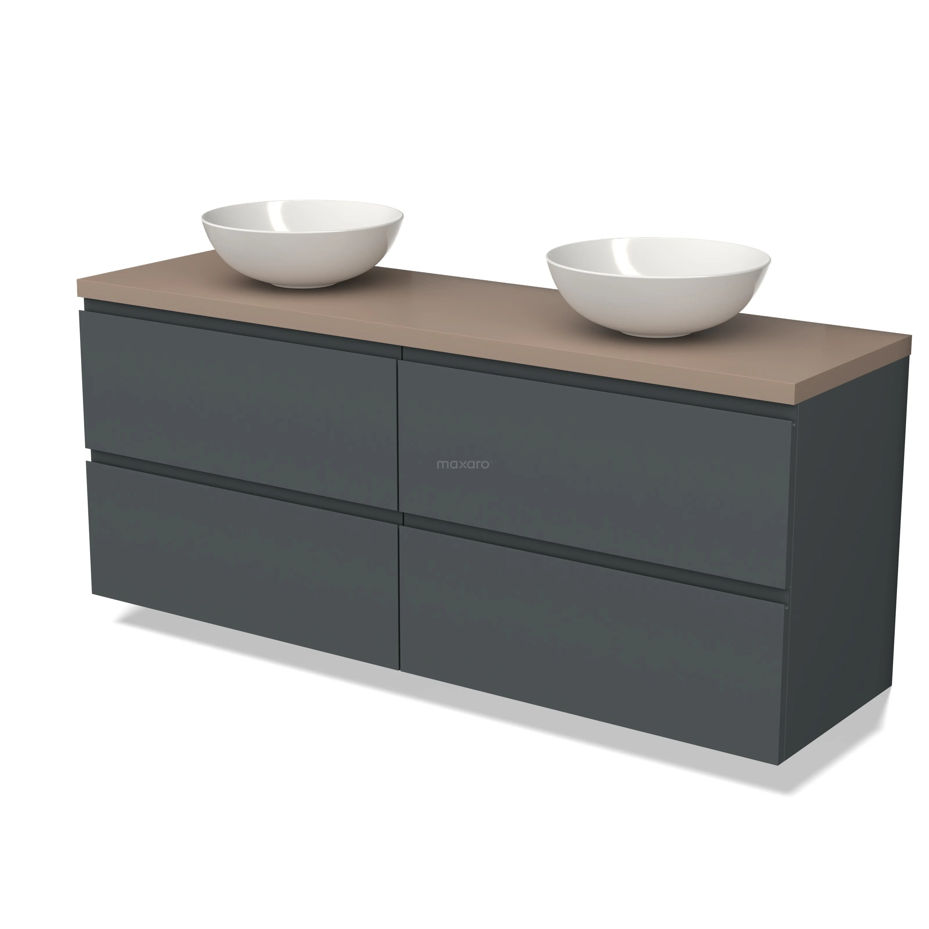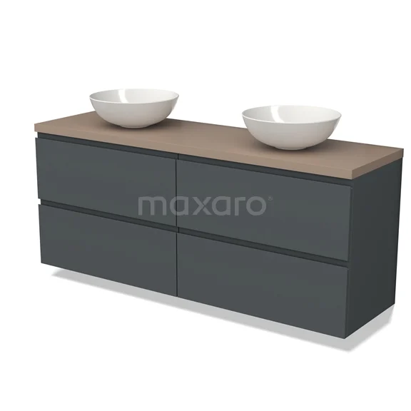 Modulo Plato Badmöbel mit Aufsatzwaschbecken | 160 cm Dunkelgrau Grifflos front Taupe blatt 4 Schubladen