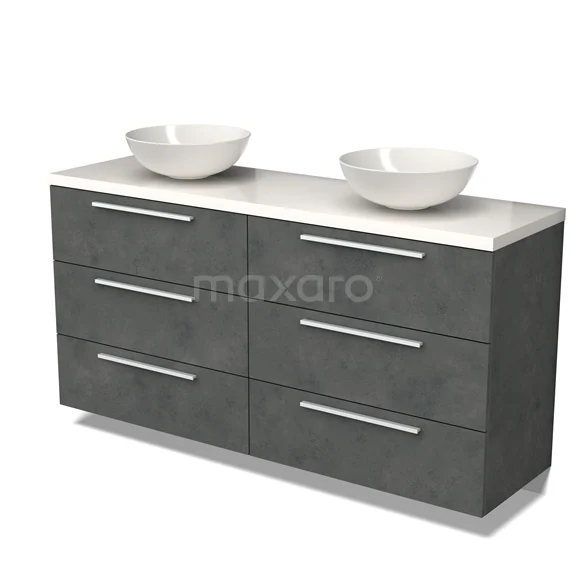 Modulo Plato Badmöbel mit Aufsatzwaschbecken | 160 cm Dunkelgrauer Beton Flach front Hochglanz Weiß blatt 6 Schubladen