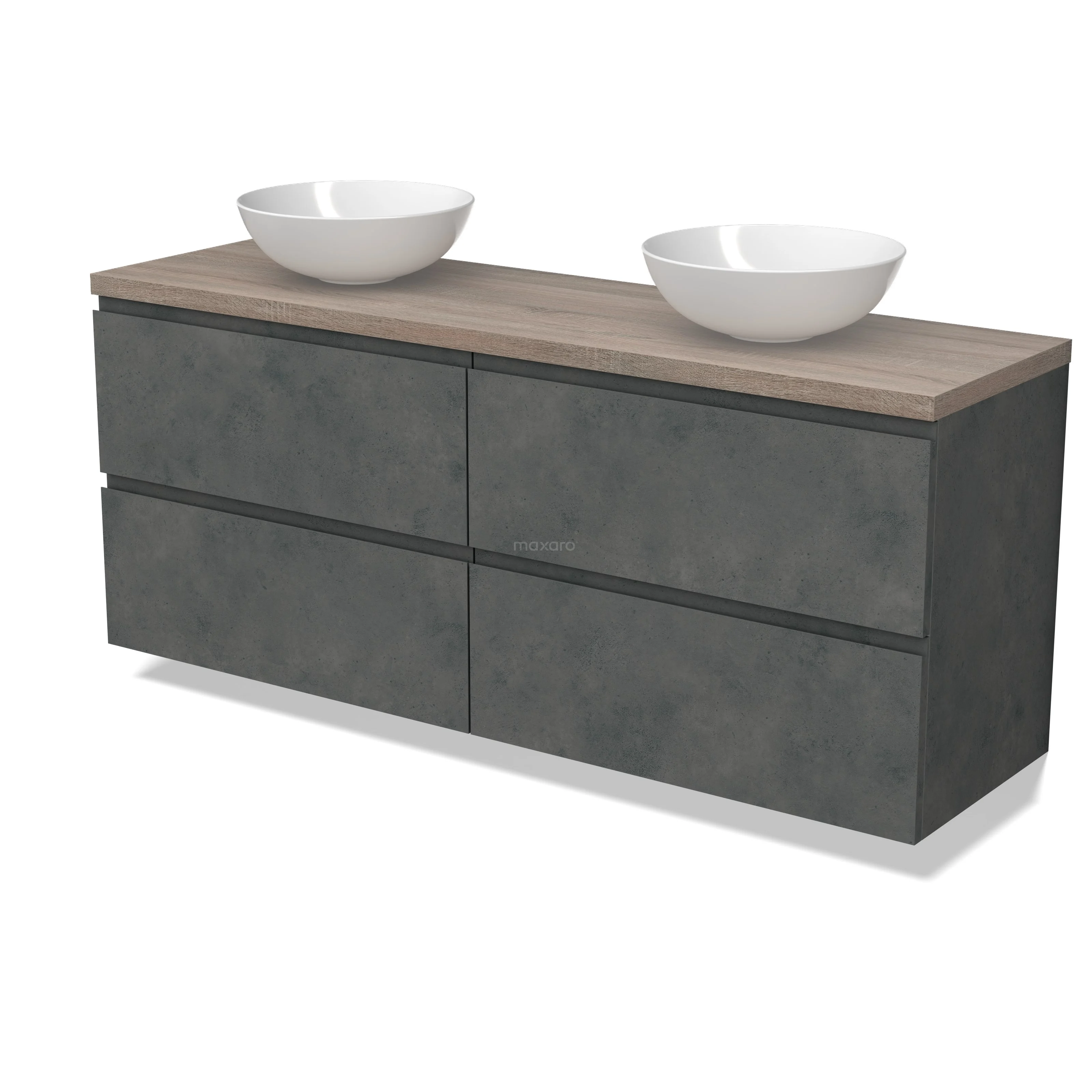 Modulo Plato Badmöbel mit Aufsatzwaschbecken | 160 cm Dunkelgrauer Beton Grifflos front Eiche blatt 4 Schubladen
