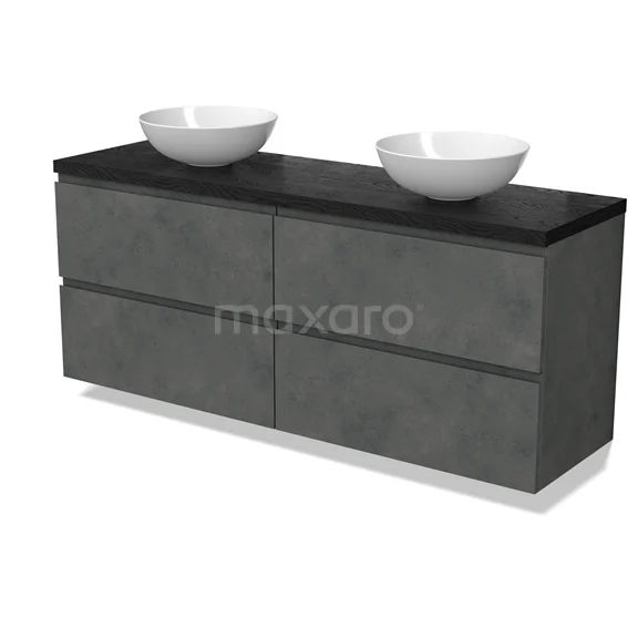 Modulo Plato Badmöbel mit Aufsatzwaschbecken | 160 cm Dunkelgrauer Beton Grifflos front Schwarze Eiche blatt 4 Schubladen