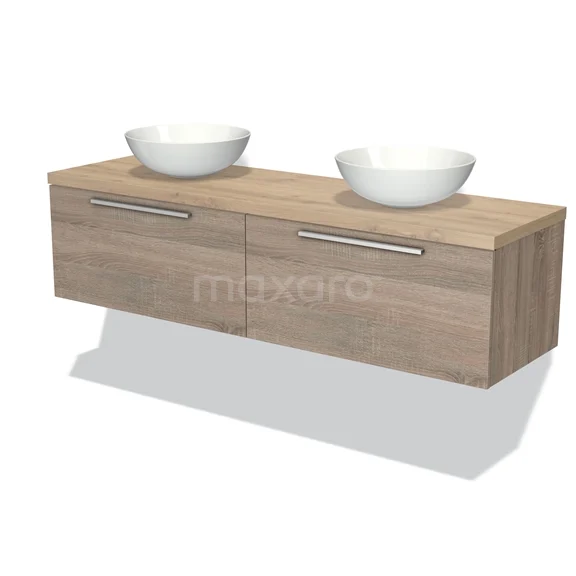 Modulo Plato Badmöbel mit Aufsatzwaschbecken | 160 cm Eiche Flach front Hellbraune Eiche blatt 2 nebeneinanderliegende Schubladen