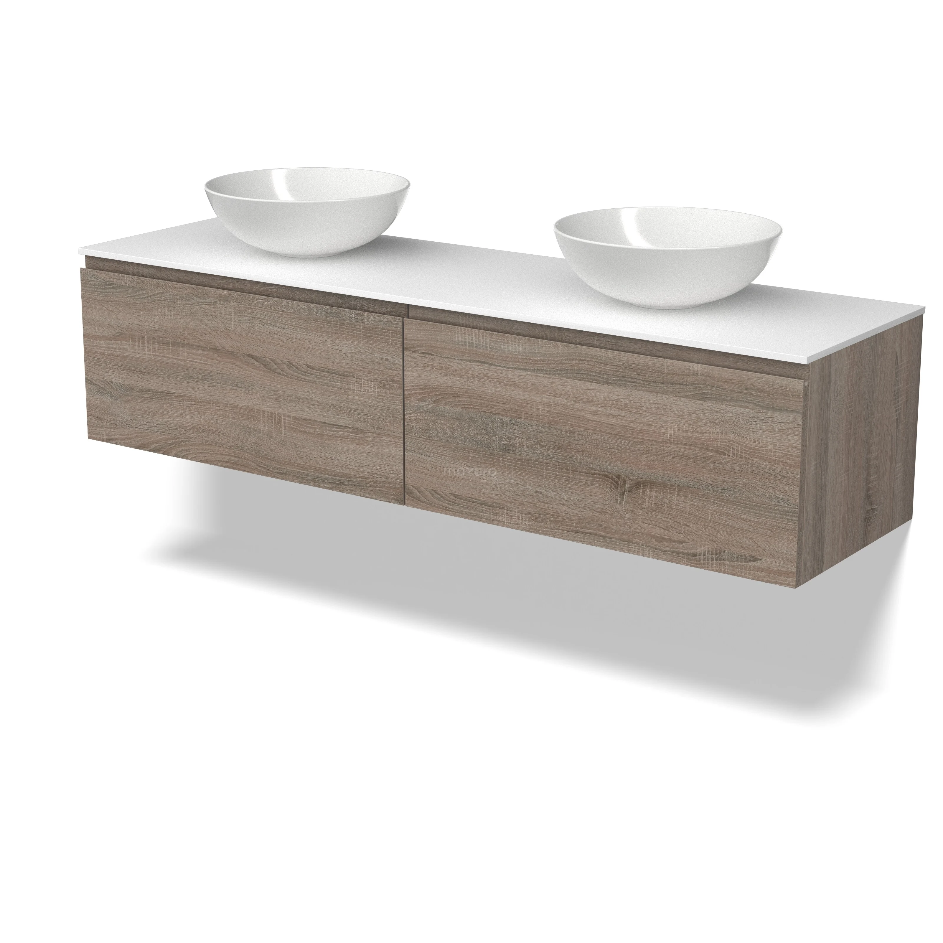 Modulo Plato Badmöbel mit Aufsatzwaschbecken | 160 cm Eiche Grifflos front Solid Surface blatt 2 nebeneinanderliegende Schubladen