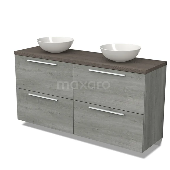 Modulo Plato Badmöbel mit Aufsatzwaschbecken | 160 cm Graue Eiche Flach front Dunkelbraune Eiche blatt 4 hohe Schubladen