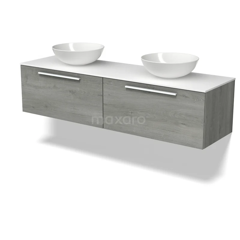 Modulo Plato Badmöbel mit Aufsatzwaschbecken | 160 cm Graue Eiche Flach front Solid Surface blatt 2 nebeneinanderliegende Schubladen