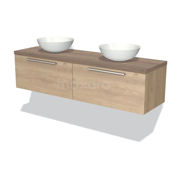Modulo Plato Badmöbel mit Aufsatzwaschbecken | 160 cm Hellbraune Eiche Flach front Mittelbraune Eiche blatt 2 nebeneinanderliegende Schubladen