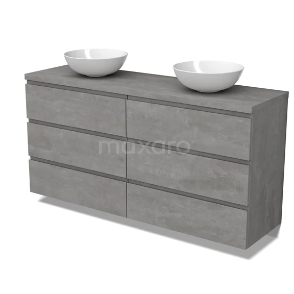 Modulo Plato Badmöbel mit Aufsatzwaschbecken | 160 cm Hellgrauer Beton Grifflos front Hellgrauer Beton blatt 6 Schubladen