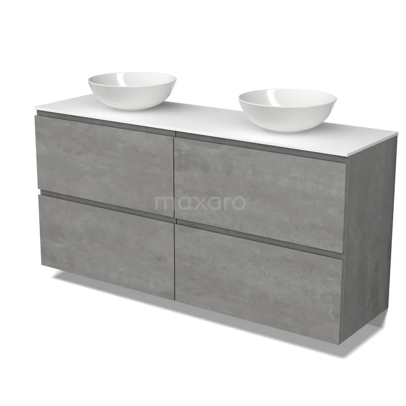 Modulo Plato Badmöbel mit Aufsatzwaschbecken | 160 cm Hellgrauer Beton Grifflos front Solid Surface blatt 4 hohe Schubladen