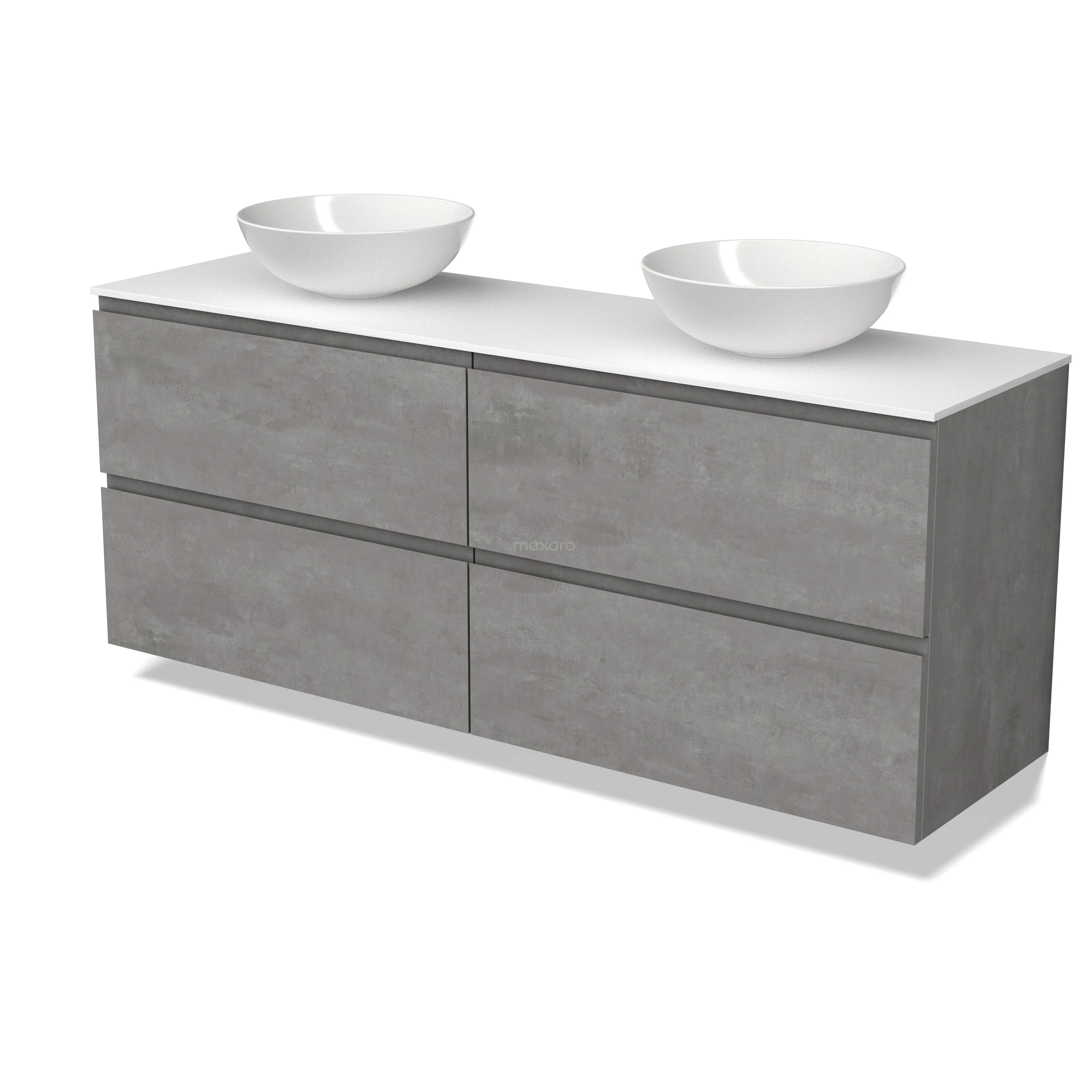 Modulo Plato Badmöbel mit Aufsatzwaschbecken | 160 cm Hellgrauer Beton Grifflos front Solid Surface blatt 4 Schubladen