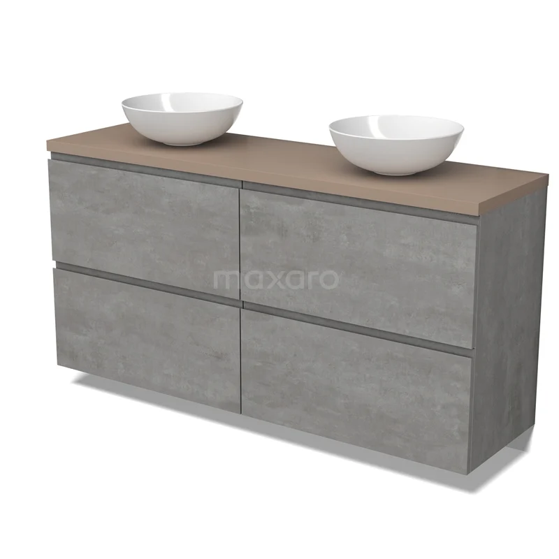 Modulo Plato Badmöbel mit Aufsatzwaschbecken | 160 cm Hellgrauer Beton Grifflos front Taupe blatt 4 hohe Schubladen