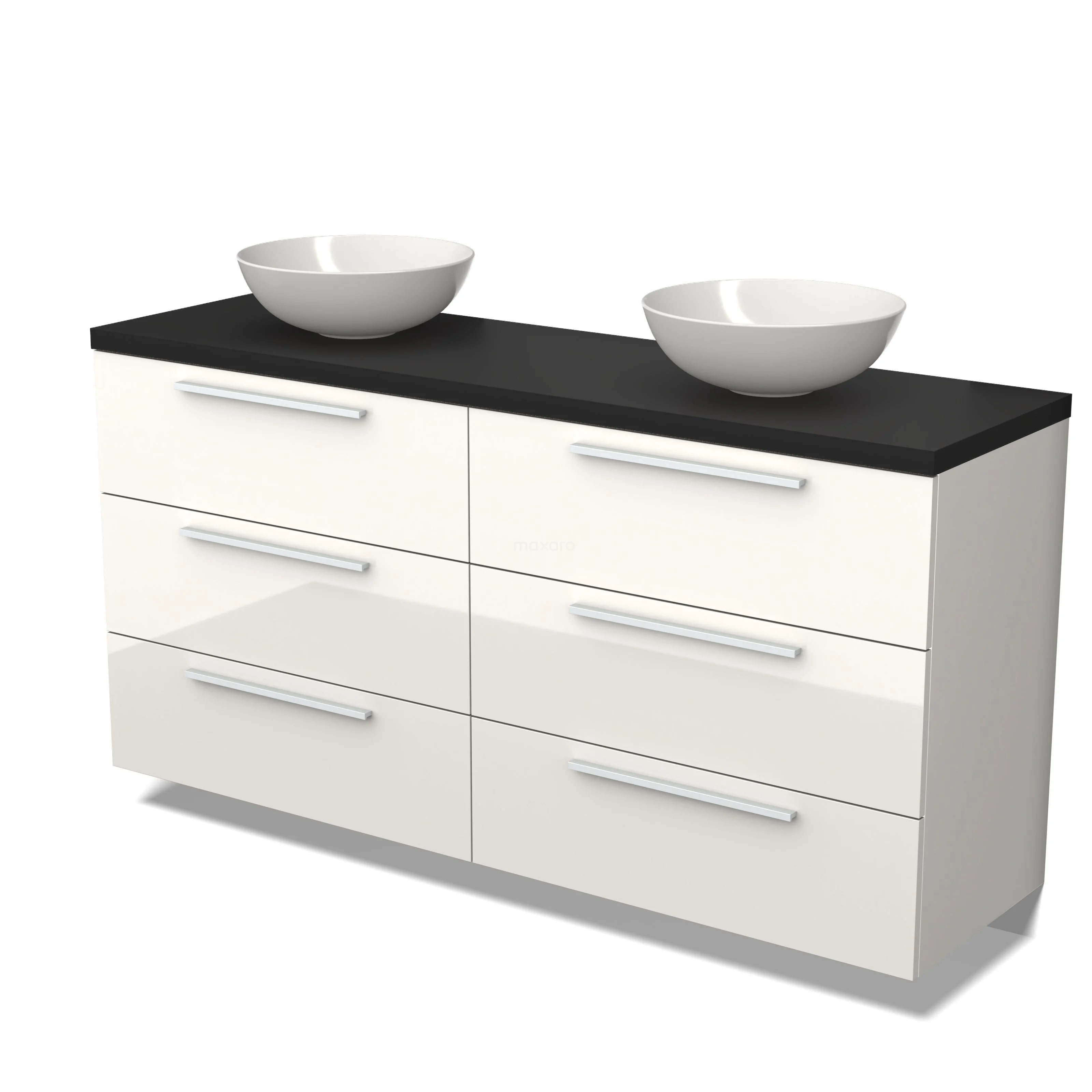 Modulo Plato Badmöbel mit Aufsatzwaschbecken | 160 cm Hochglanz Weiß Flach front Matt Schwarz blatt 6 Schubladen