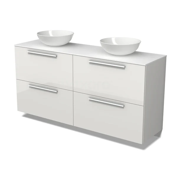Modulo Plato Badmöbel mit Aufsatzwaschbecken | 160 cm Hochglanz Weiß Flach front Solid Surface blatt 4 hohe Schubladen