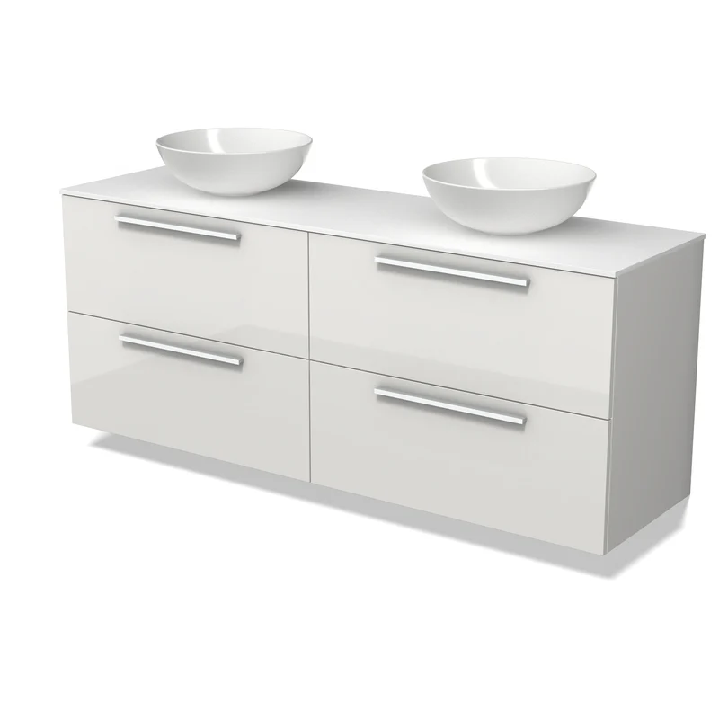 Modulo Plato Badmöbel mit Aufsatzwaschbecken | 160 cm Hochglanz Weiß Flach front Solid Surface blatt 4 Schubladen