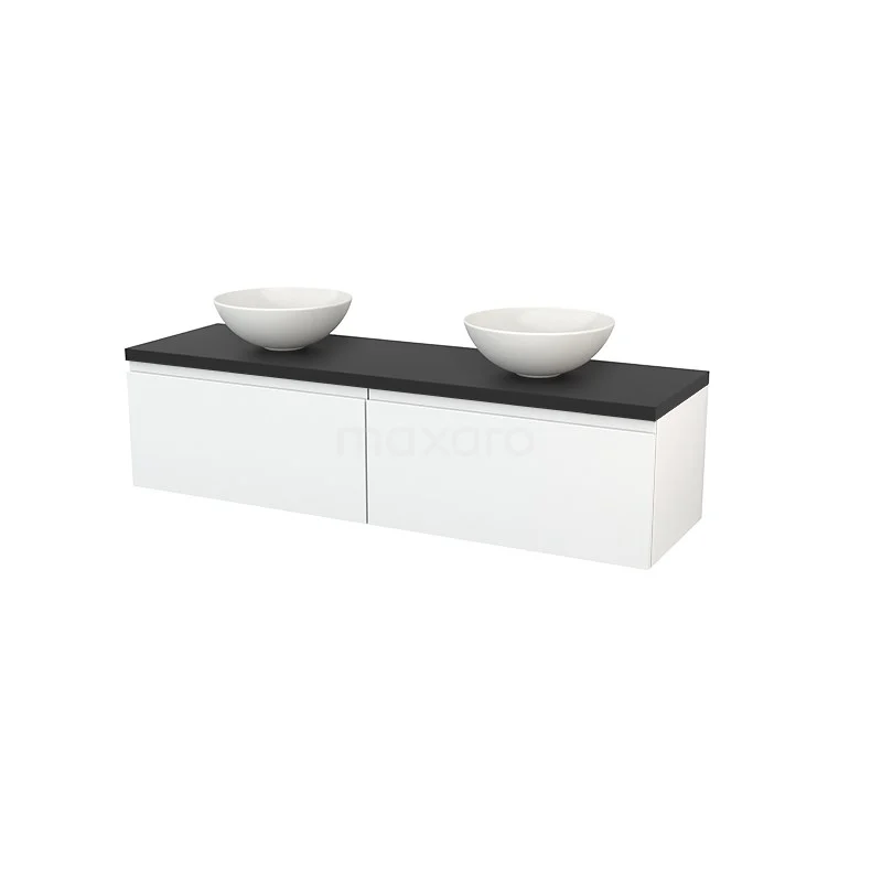 Modulo+ Plato Badmöbel mit Aufsatzwaschbecken | 160 cm Hochglanz Weiß Grifflos front Kohlenstoff blatt 2 nebeneinanderliegende Schubladen