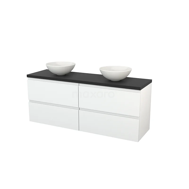 Modulo+ Plato Badmöbel mit Aufsatzwaschbecken | 160 cm Hochglanz Weiß Grifflos front Kohlenstoff blatt 4 Schubladen