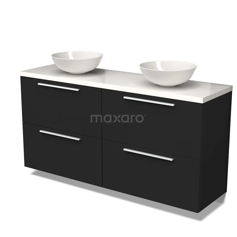 Modulo Plato Badmöbel mit Aufsatzwaschbecken | 160 cm Matt Schwarz Flach front Hochglanz Weiß blatt 4 hohe Schubladen