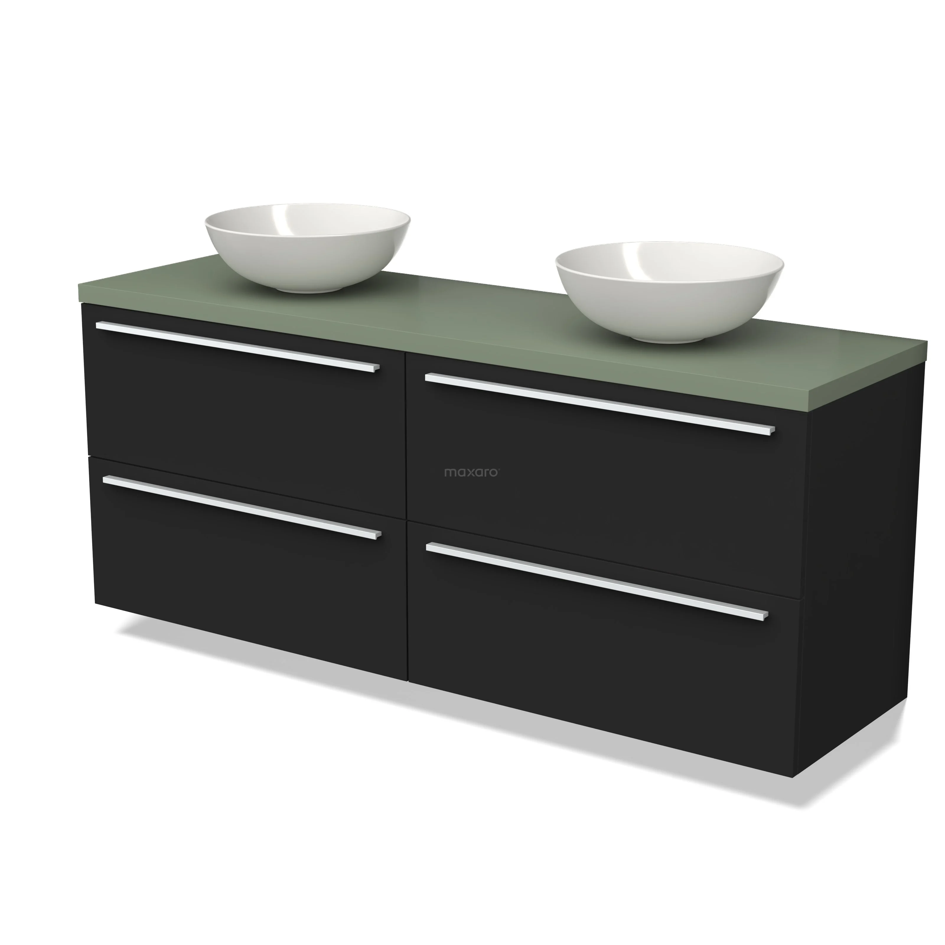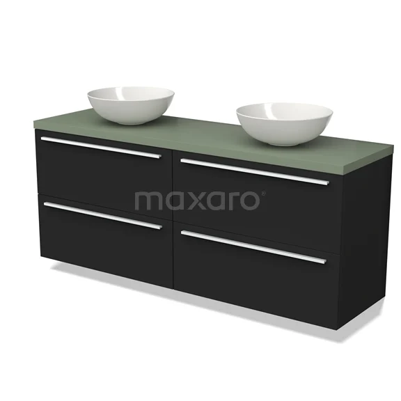 Modulo Plato Badmöbel mit Aufsatzwaschbecken | 160 cm Matt Schwarz Flach front Salbeigrün blatt 4 Schubladen