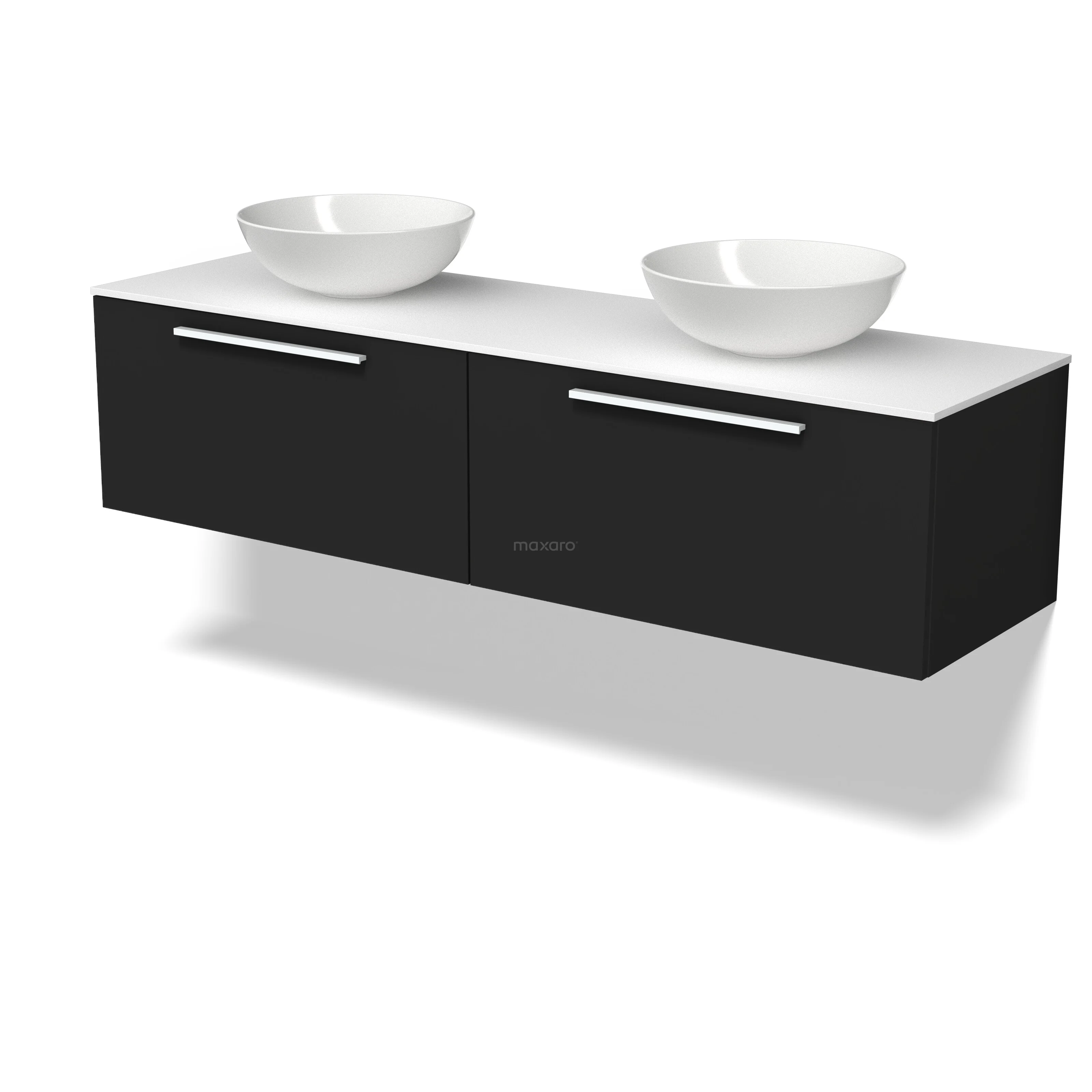 Modulo Plato Badmöbel mit Aufsatzwaschbecken | 160 cm Matt Schwarz Flach front Solid Surface blatt 2 nebeneinanderliegende Schubladen