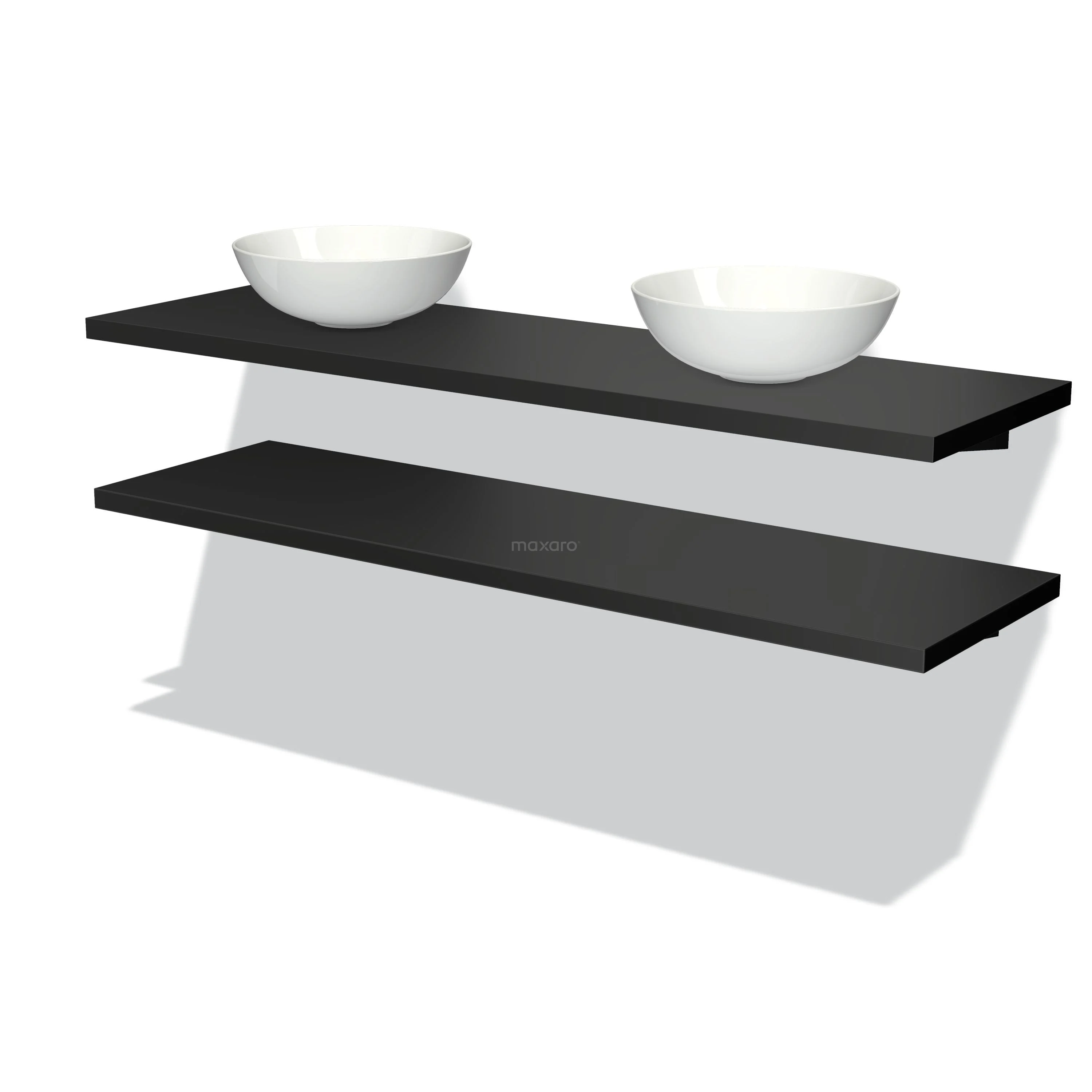 Modulo Plato Badmöbel mit Aufsatzwaschbecken | 160 cm Matt Schwarz front Matt Schwarz blatt 2 Waschtischplatten