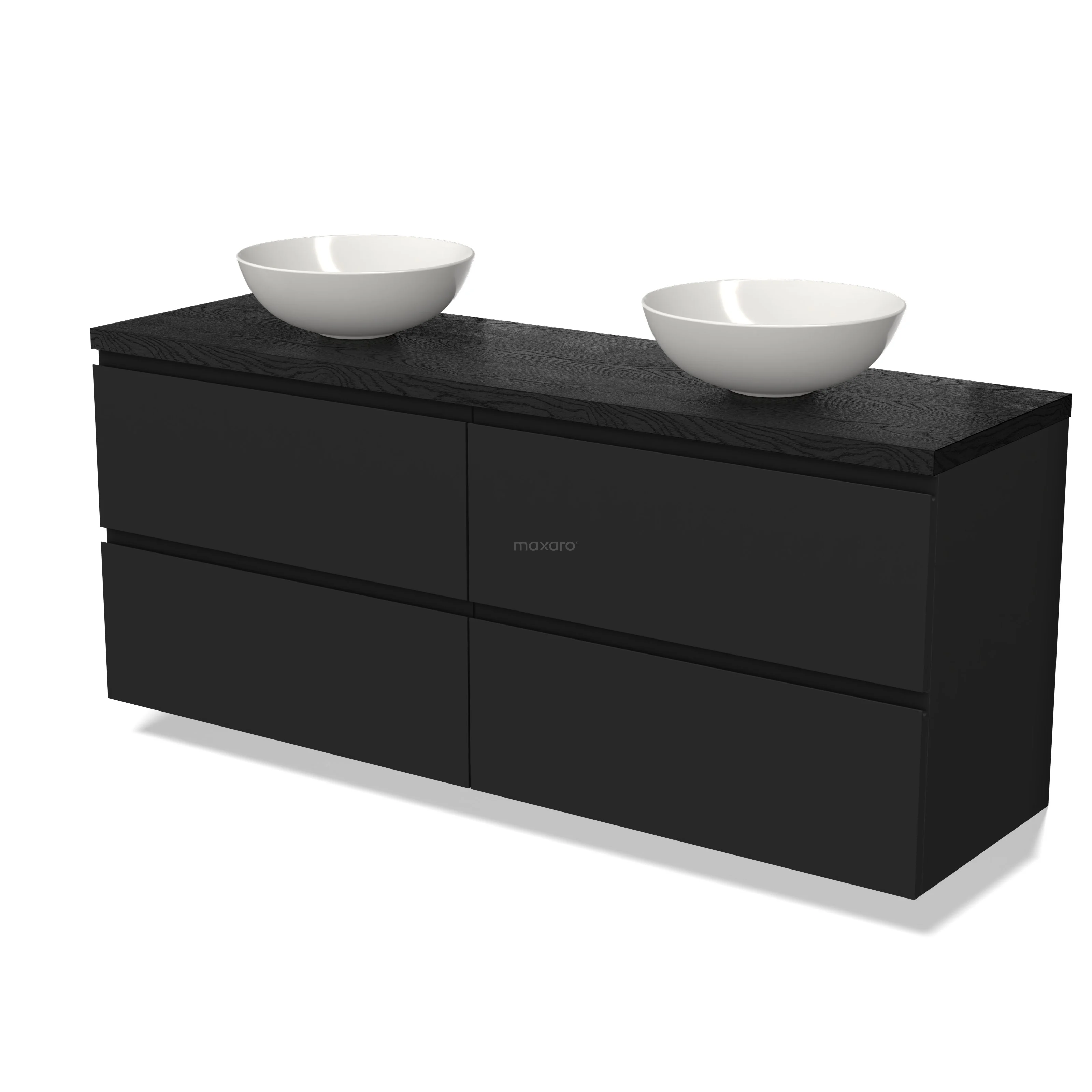 Modulo Plato Badmöbel mit Aufsatzwaschbecken | 160 cm Matt Schwarz Grifflos front Schwarze Eiche blatt 4 Schubladen
