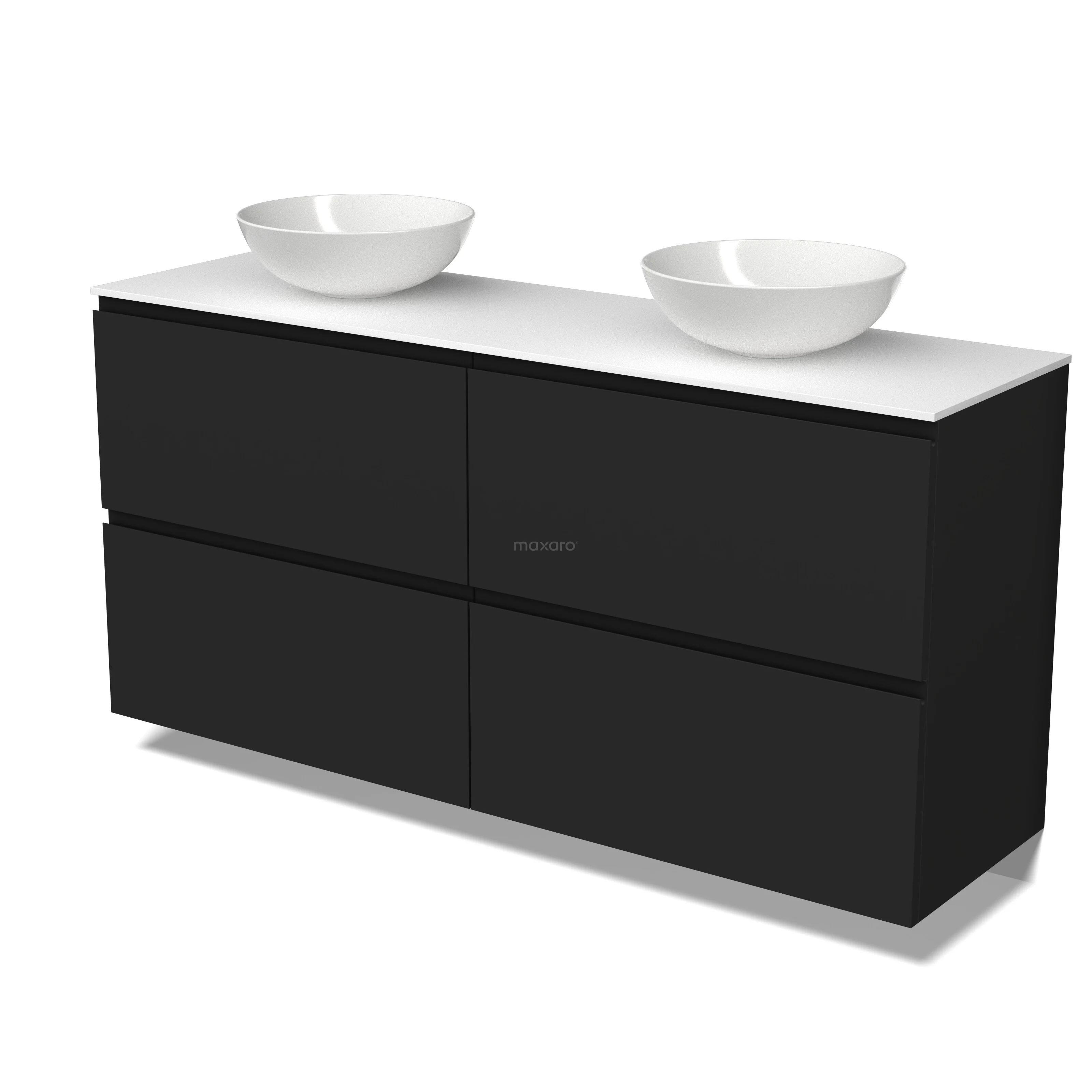 Modulo Plato Badmöbel mit Aufsatzwaschbecken | 160 cm Matt Schwarz Grifflos front Solid Surface blatt 4 hohe Schubladen