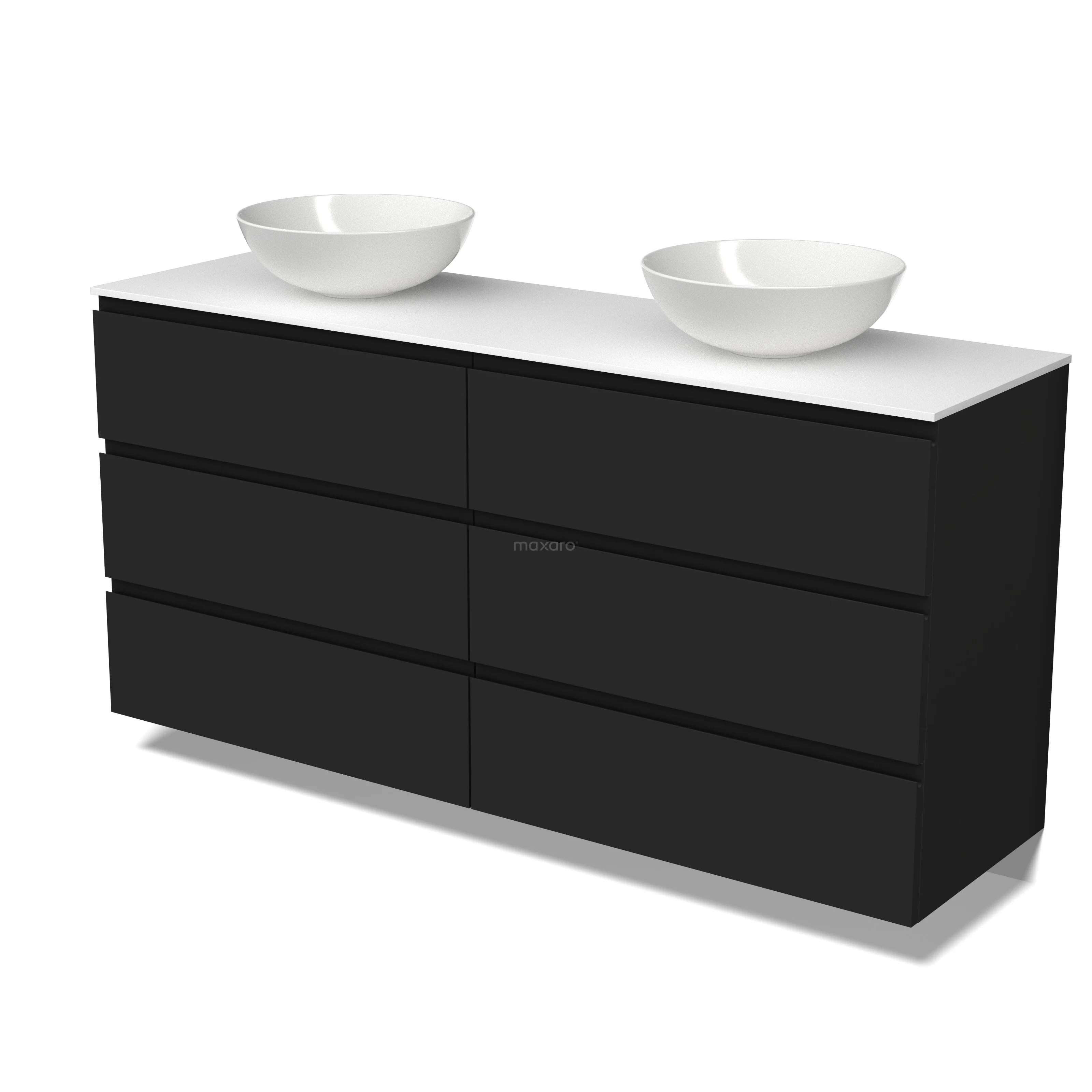 Modulo Plato Badmöbel mit Aufsatzwaschbecken | 160 cm Matt Schwarz Grifflos front Solid Surface blatt 6 Schubladen