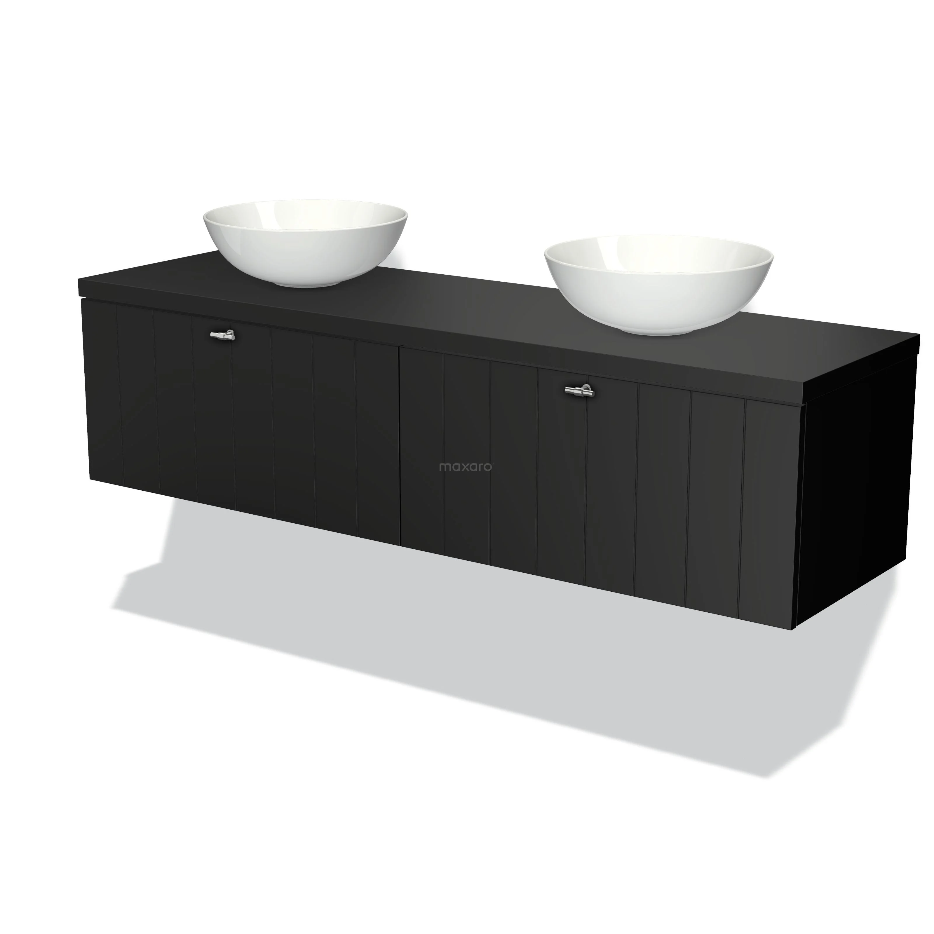 Modulo Plato Badmöbel mit Aufsatzwaschbecken | 160 cm Matt Schwarz Lamelle front Matt Schwarz blatt 2 nebeneinanderliegende Schubladen