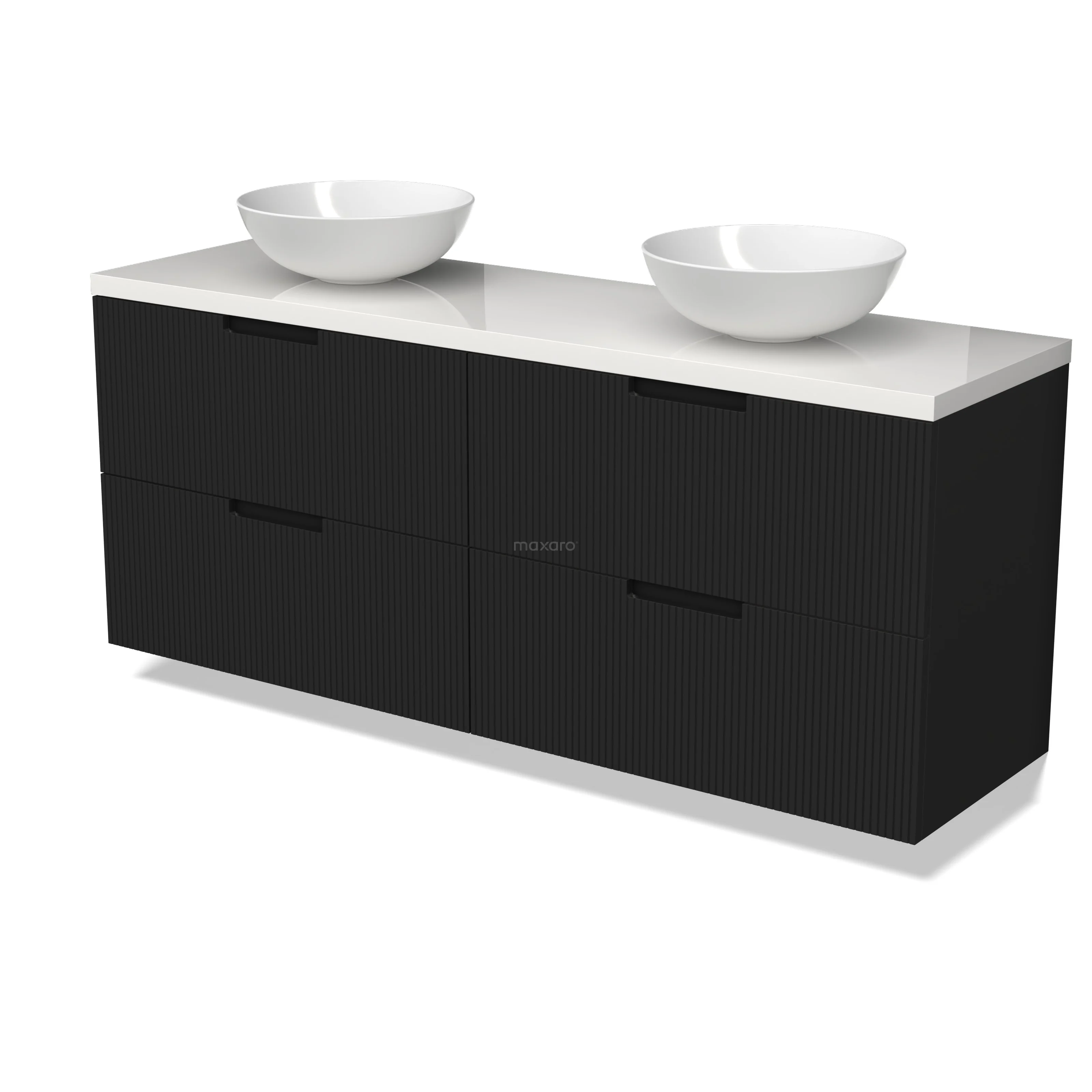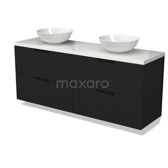 Modulo Plato Badmöbel mit Aufsatzwaschbecken | 160 cm Matt Schwarz Linie front Hochglanz Weiß blatt 4 Schubladen