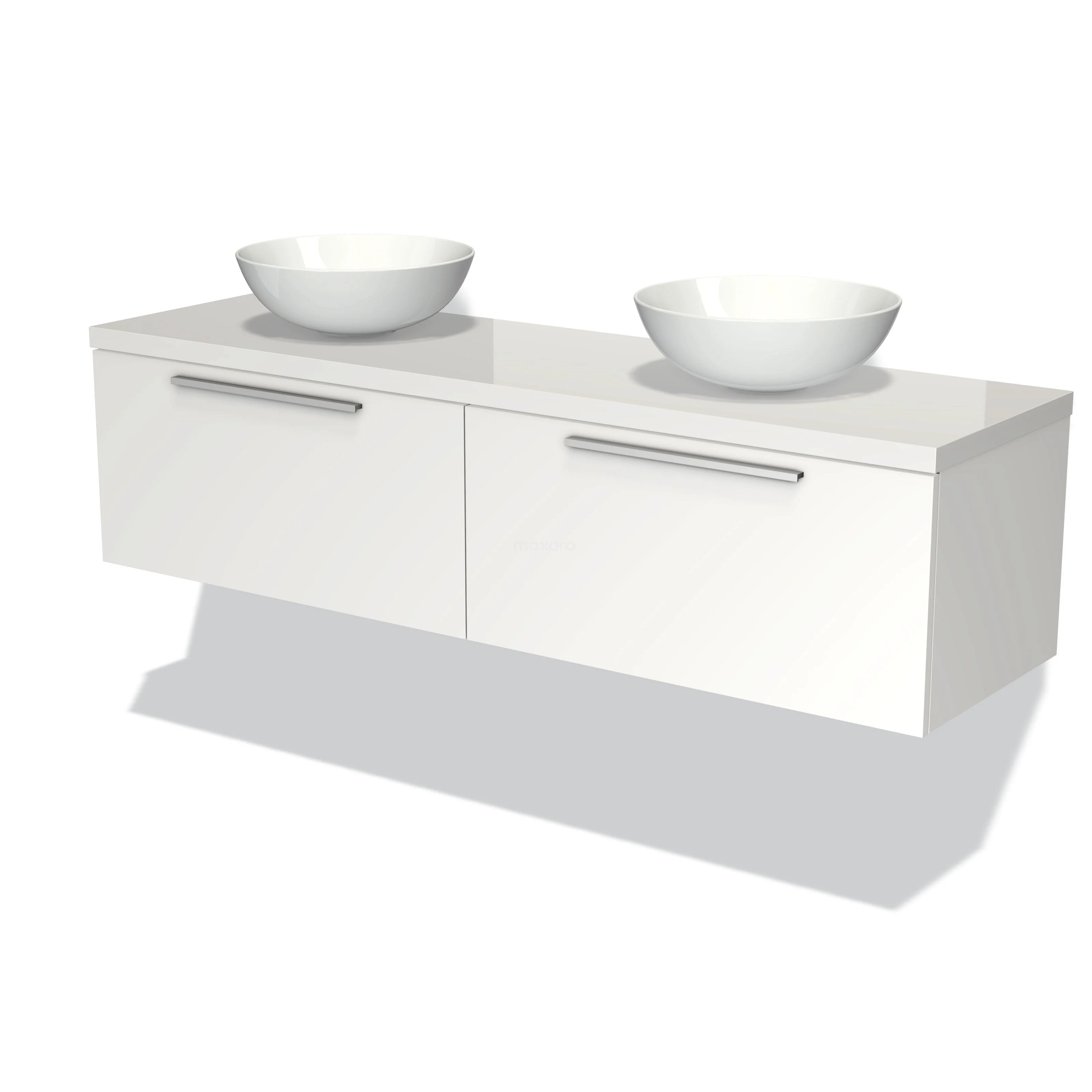 Modulo Plato Badmöbel mit Aufsatzwaschbecken | 160 cm Matt Weiß Flach front Hochglanz Weiß blatt 2 nebeneinanderliegende Schubladen