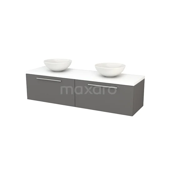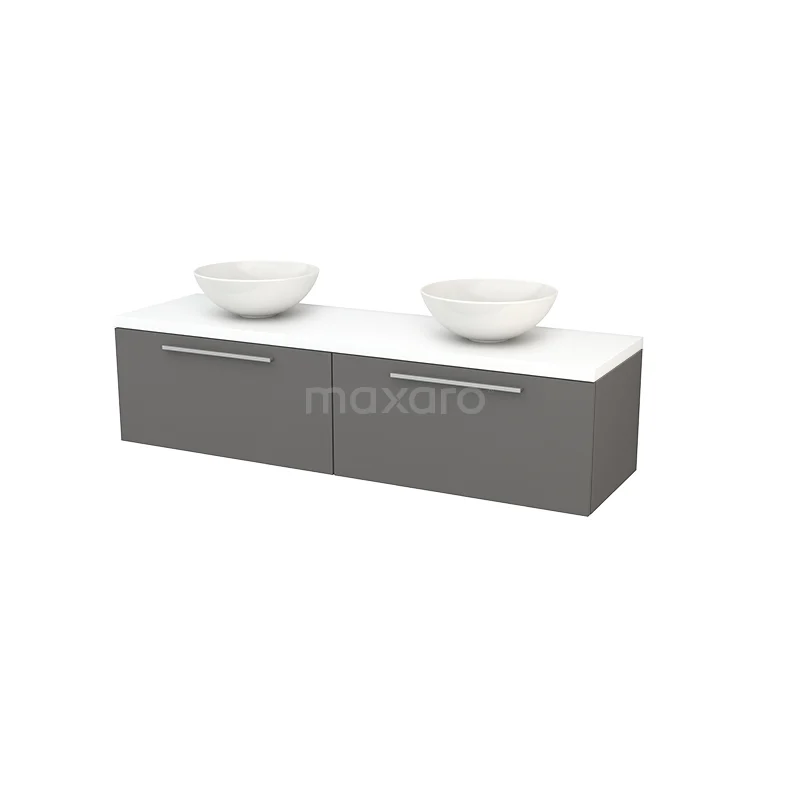 Modulo+ Plato Badmöbel mit Aufsatzwaschbecken | 160 cm Matt Weiß Flach front Matt Weiß blatt 2 nebeneinanderliegende Schubladen