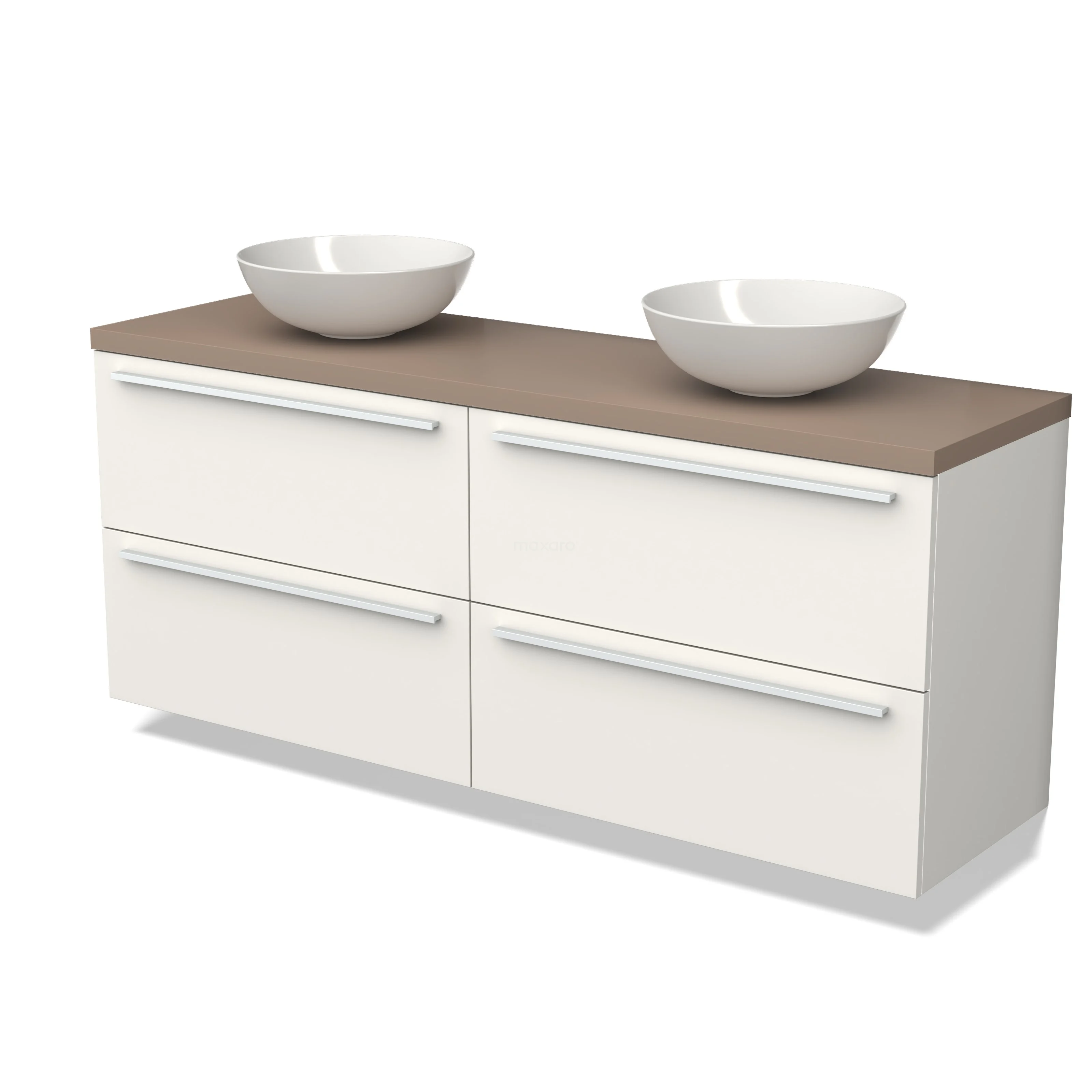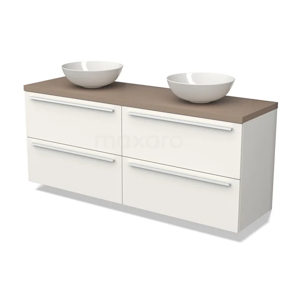 Modulo Plato Badmöbel mit Aufsatzwaschbecken | 160 cm Matt Weiß Flach front Taupe blatt 4 Schubladen