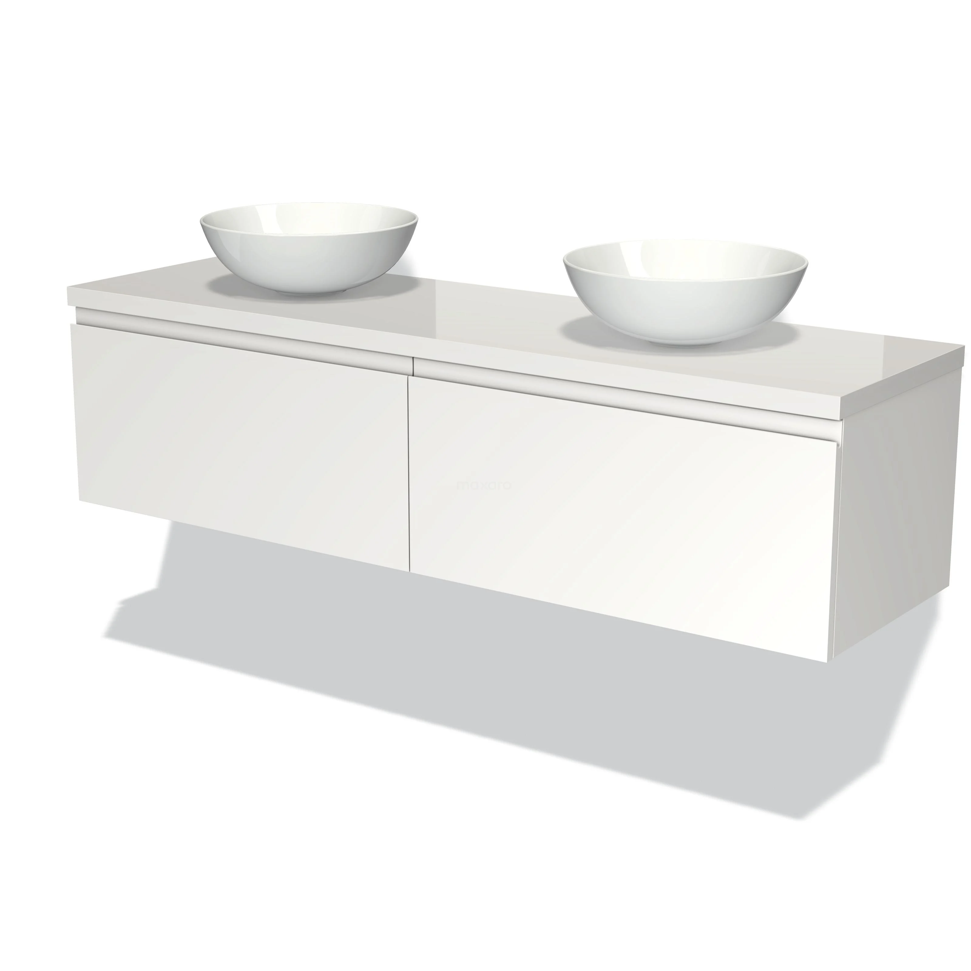 Modulo Plato Badmöbel mit Aufsatzwaschbecken | 160 cm Matt Weiß Grifflos front Hochglanz Weiß blatt 2 nebeneinanderliegende Schubladen