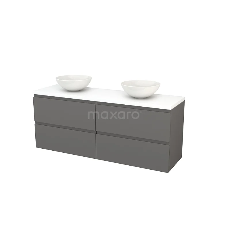 Modulo+ Plato Badmöbel mit Aufsatzwaschbecken | 160 cm Matt Weiß Grifflos front Matt Weiß blatt 4 Schubladen