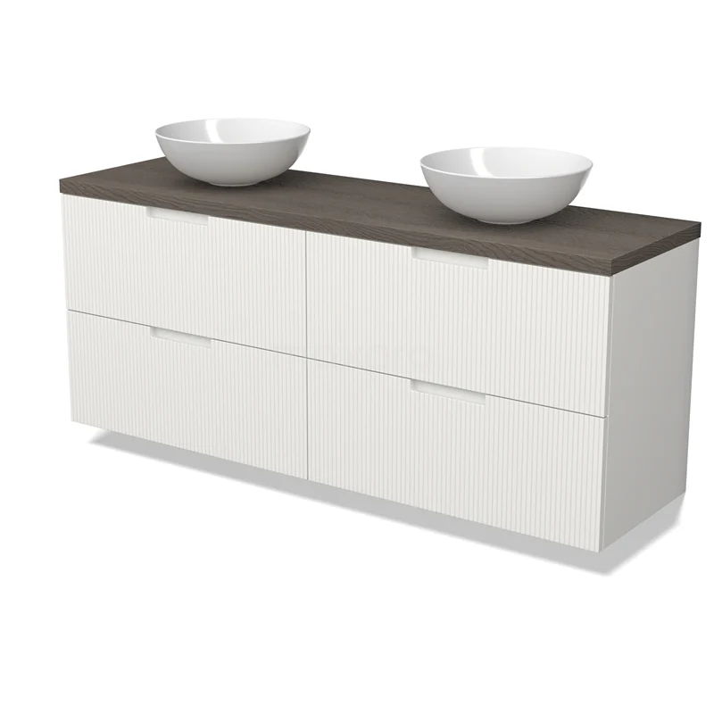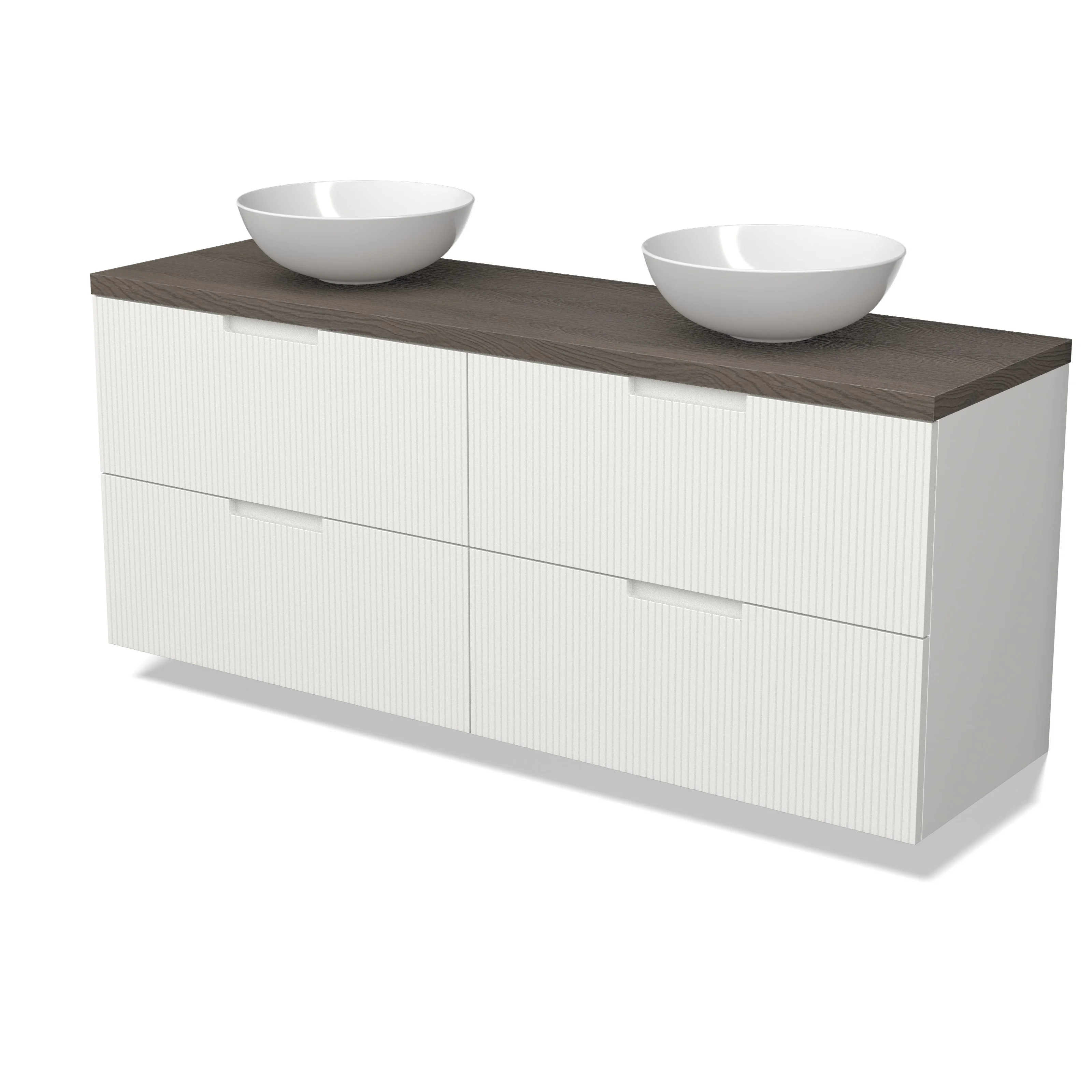 Modulo Plato Badmöbel mit Aufsatzwaschbecken | 160 cm Matt Weiß Linie front Dunkelbraune Eiche blatt 4 Schubladen