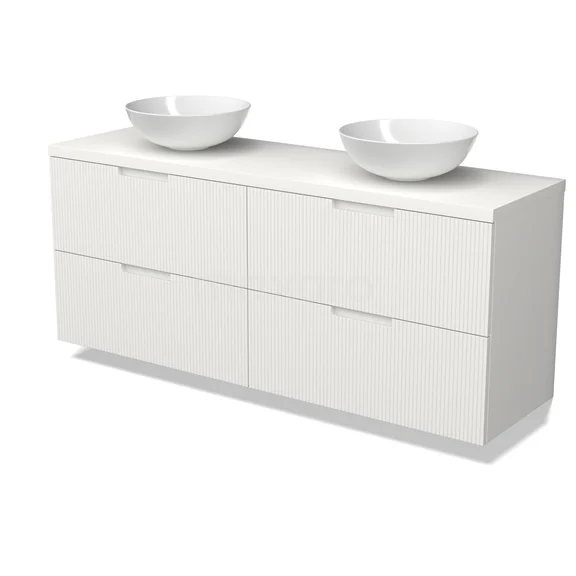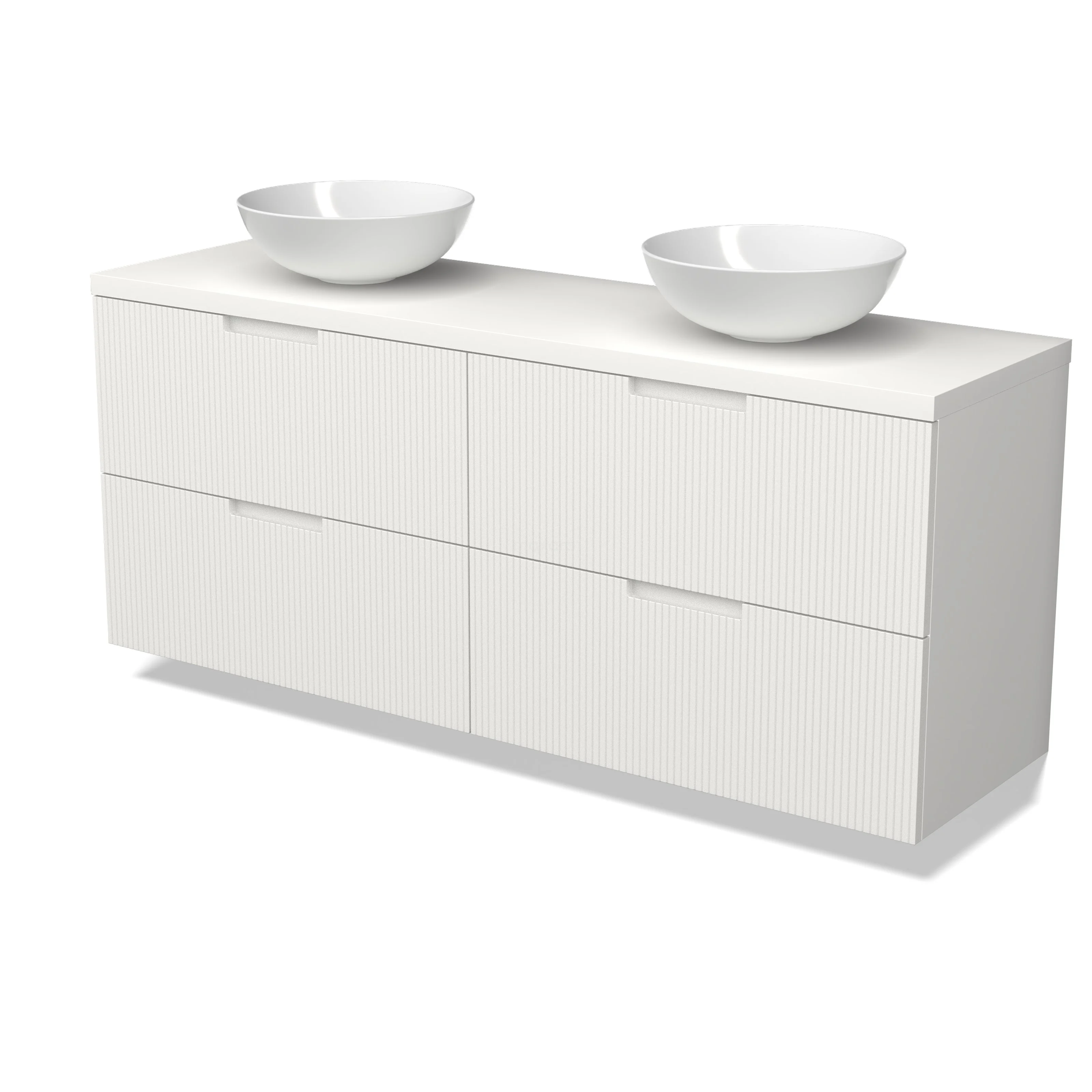 Modulo Plato Badmöbel mit Aufsatzwaschbecken | 160 cm Matt Weiß Linie front Matt Weiß blatt 4 Schubladen