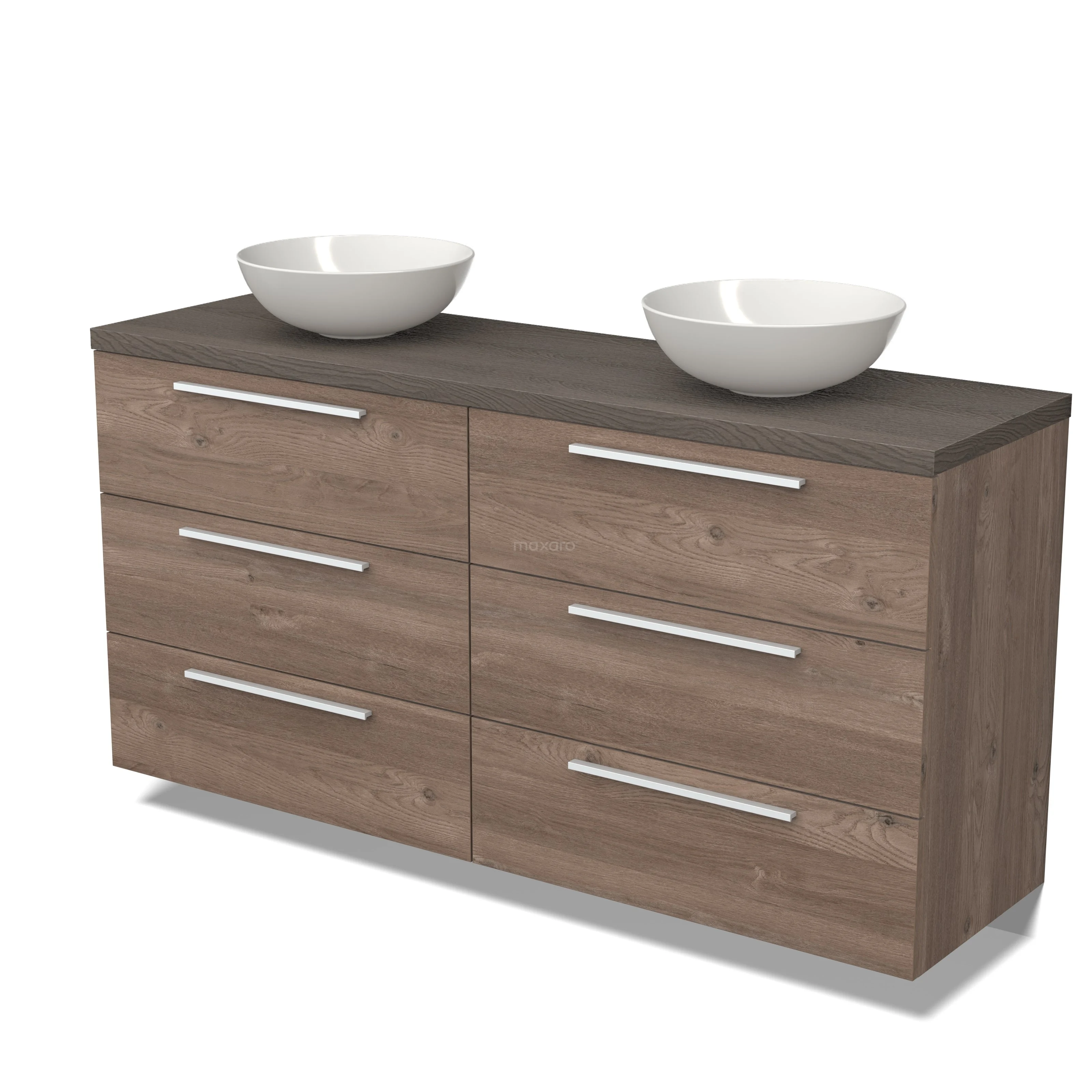 Modulo Plato Badmöbel mit Aufsatzwaschbecken | 160 cm Mittelbraune Eiche Flach front Dunkelbraune Eiche blatt 6 Schubladen