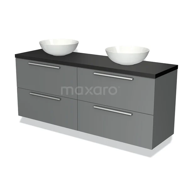 Modulo Plato Badmöbel mit Aufsatzwaschbecken | 160 cm Mittelgrau Flach front Matt Schwarz blatt 4 Schubladen