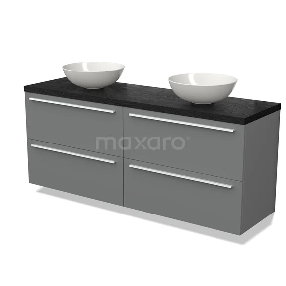 Modulo Plato Badmöbel mit Aufsatzwaschbecken | 160 cm Mittelgrau Flach front Schwarze Eiche blatt 4 Schubladen