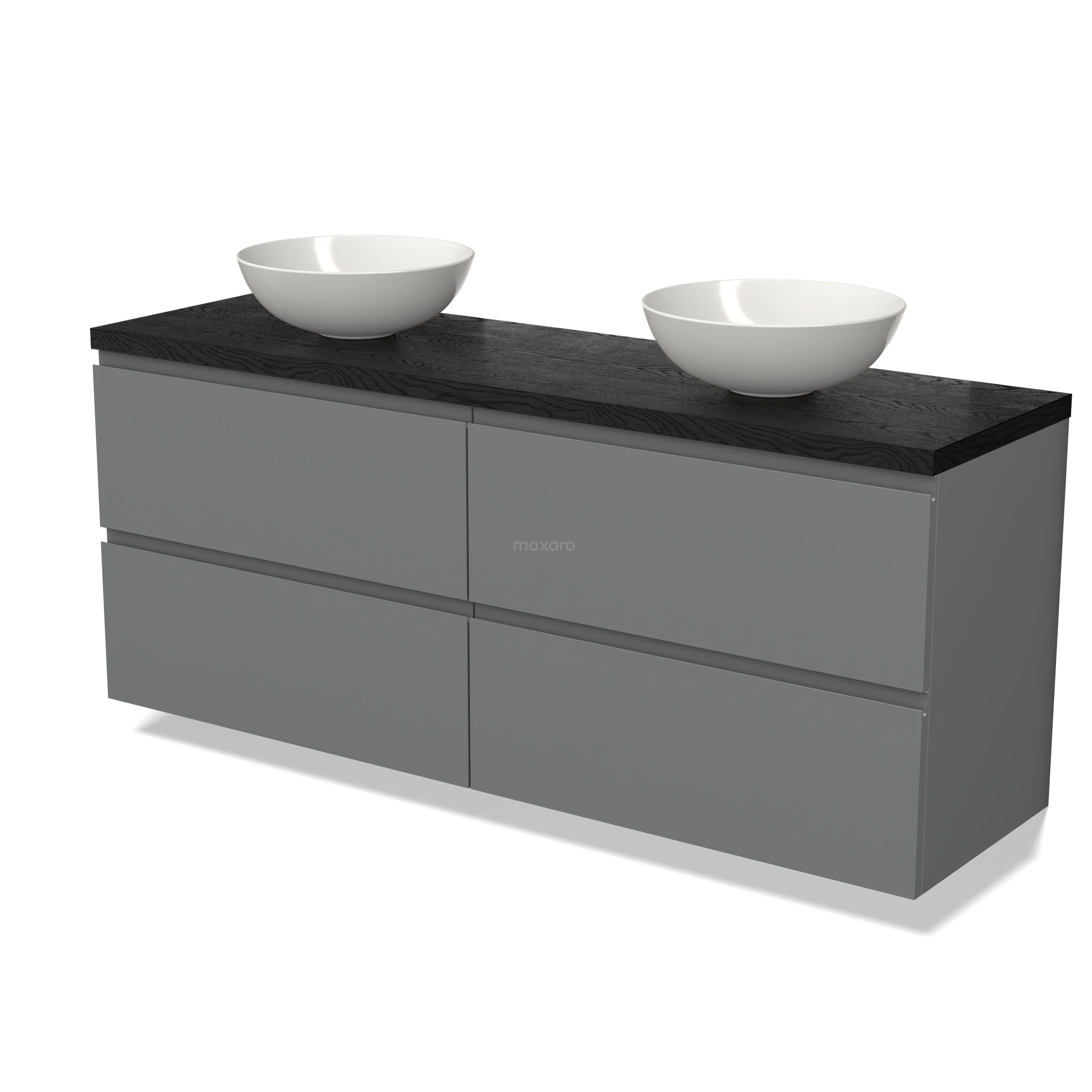 Modulo Plato Badmöbel mit Aufsatzwaschbecken | 160 cm Mittelgrau Grifflos front Schwarze Eiche blatt 4 Schubladen