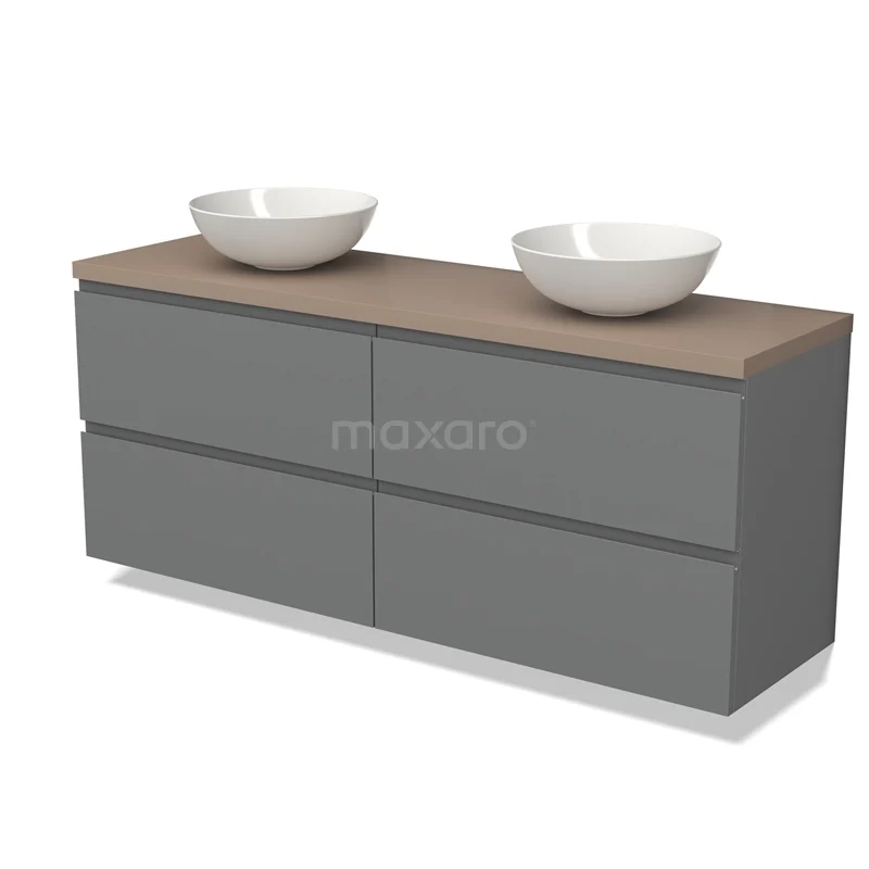 Modulo Plato Badmöbel mit Aufsatzwaschbecken | 160 cm Mittelgrau Grifflos front Taupe blatt 4 Schubladen