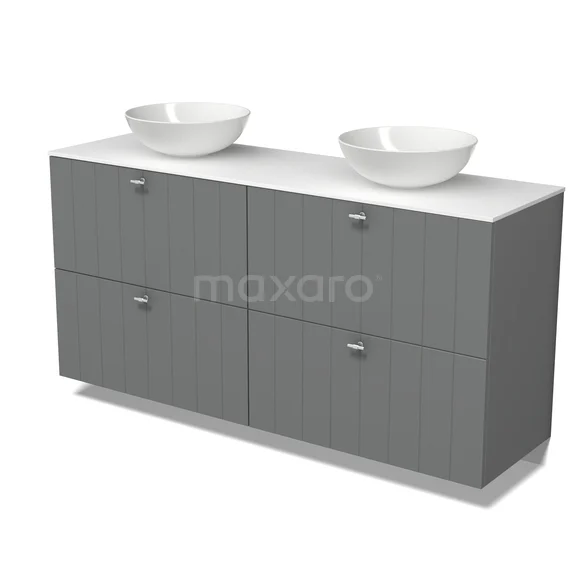 Modulo Plato Badmöbel mit Aufsatzwaschbecken | 160 cm Mittelgrau Lamelle front Solid Surface blatt 4 hohe Schubladen