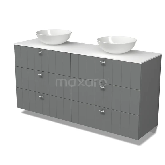 Modulo Plato Badmöbel mit Aufsatzwaschbecken | 160 cm Mittelgrau Lamelle front Solid Surface blatt 6 Schubladen