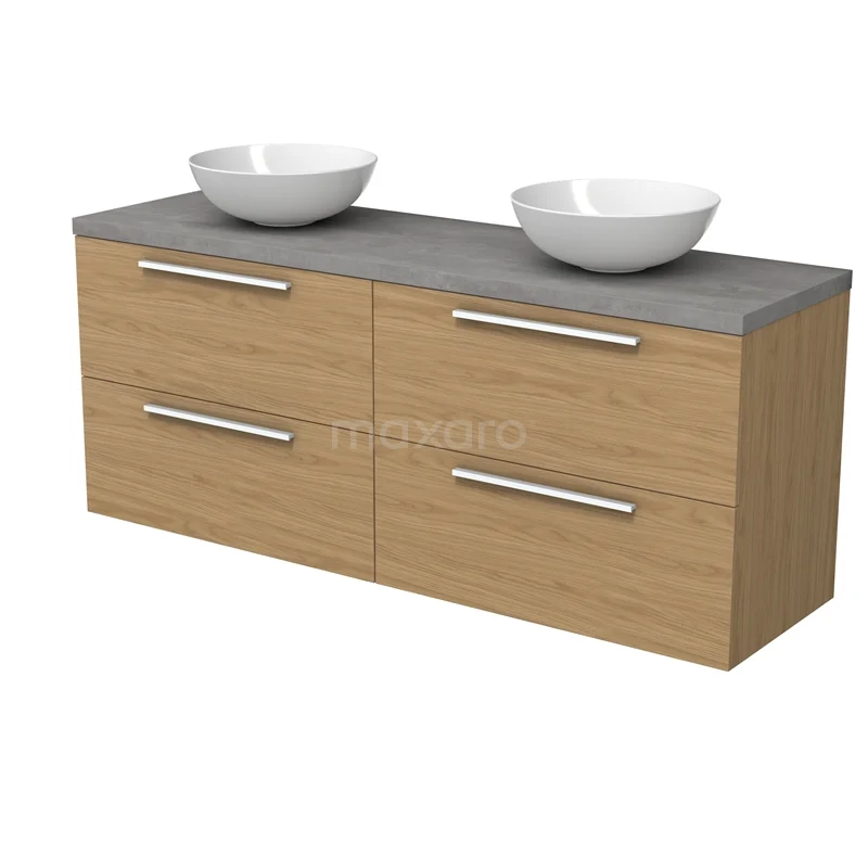 Modulo Plato Badmöbel mit Aufsatzwaschbecken | 160 cm Natürliches Furnier Flach front Hellgrauer Beton blatt 4 Schubladen