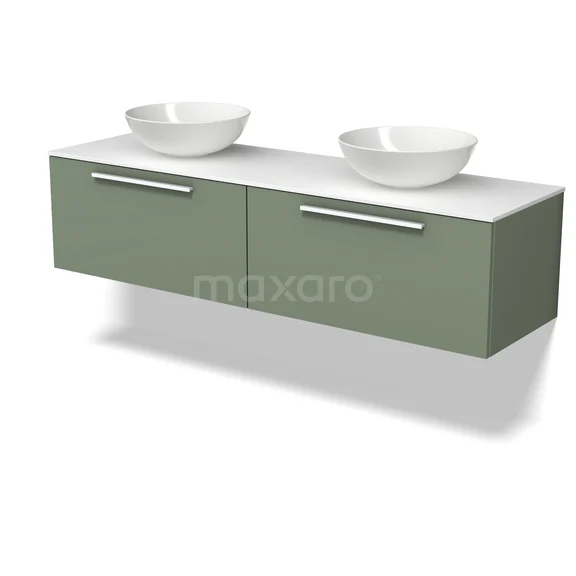 Modulo Plato Badmöbel mit Aufsatzwaschbecken | 160 cm Salbeigrün Flach front Solid Surface blatt 2 nebeneinanderliegende Schubladen